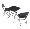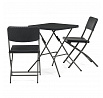 Zahradní sestava zahrnuje kompaktní stůl o rozměru 60 cm a dvě skládací židle, které jsou vyrobeny z odolného šedého plastu a kovu. Plastová deska stolu je snadno udržovatelná a odolná vůči povětrnostním vlivům, zatímco kovová podnož zajišťuje stabilitu a pevnost celé sestavy. Židle jsou navrženy pro jednoduché skládání a skladování, což usnadňuje manipulaci a šetří místo při uskladnění mimo sezónu. Celý set je ideální pro menší zahradní prostory, balkony nebo terasy, kde je potřeba praktický a funkční nábytek s dlouhou životností. Neutrální šedá barva umožňuje snadné sladění s různými venkovními dekoracemi.