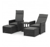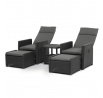 Zahradní set 1+2 v šedém provedení kombinuje pevný kovový rám s výplní z polyratanu které zajišťuje snadnou údržbu a dlouhou životnost i při venkovním použití. Sada obsahuje dvě polohovací křesla s nastavitelným sklonem opěradla pro maximální komfort a dva bonusové taburety, které lze využít jako podnožky nebo další sedací plochy. Součástí je také praktický stolek s deskou z umělého ratanu, který doplňuje celkový vzhled a funkčnost setu. Ideální volba pro relaxaci na zahradě, terase či balkóně.