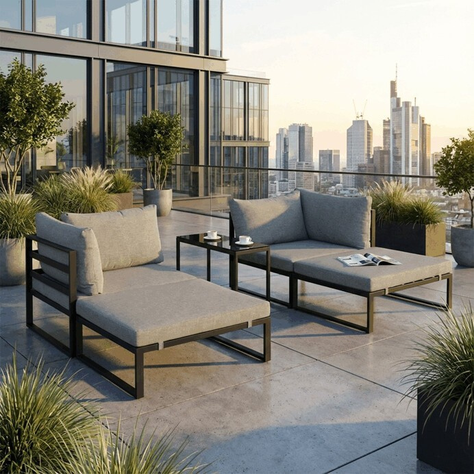 Tento set kombinuje komfort a odolnost, ideální pro relaxaci i posezení s přáteli.
