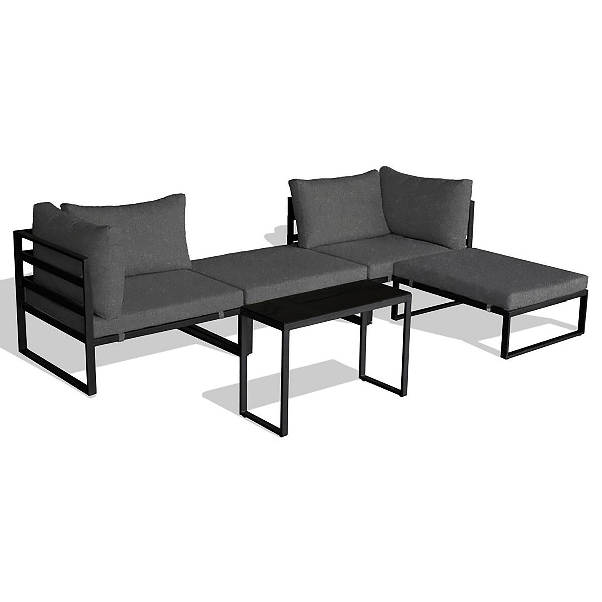 Moderní zahradní sestava značky Autronic je dokonalým řešením pro váš venkovní prostor. Sestava je multifunkční a umožňuje variabilní uspořádání podle vašich potřeb. Pevná kovová konstrukce s práškovou povrchovou úpravou v antracitové barvě je doplněna pohodlnými tmavě šedými látkovými sedáky, které jsou pevně připevněny ke konstrukci pro maximální stabilitu. Deska stolku z tvrzeného skla dodává sestavě elegantní vzhled, zatímco moderní design zaručuje stylový doplněk do vaší zahrady nebo na terasu.