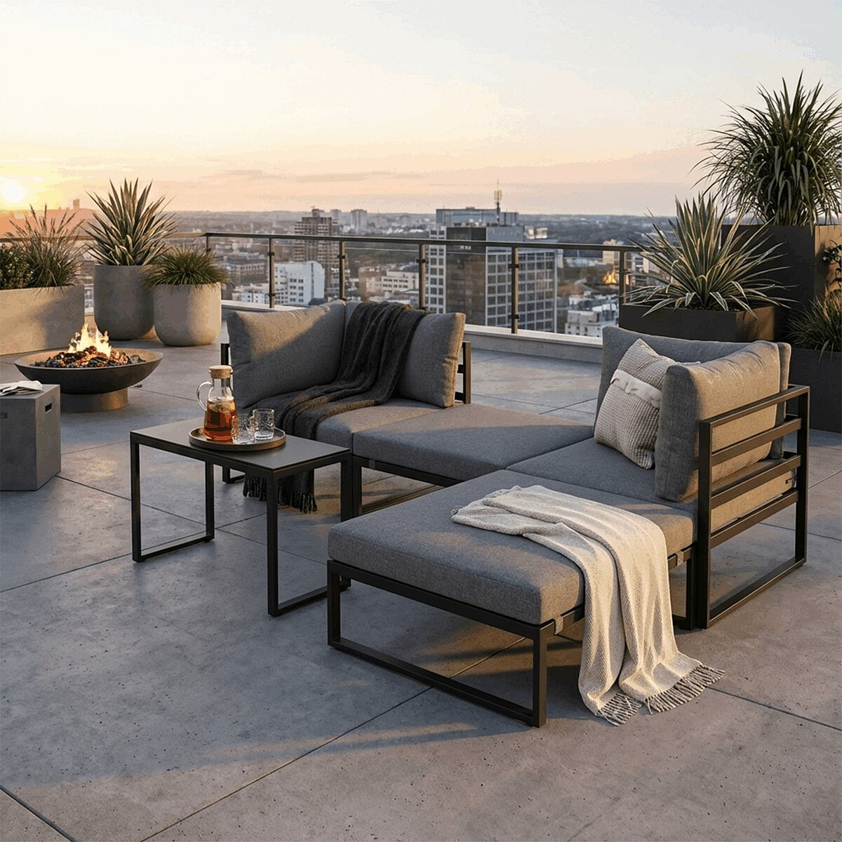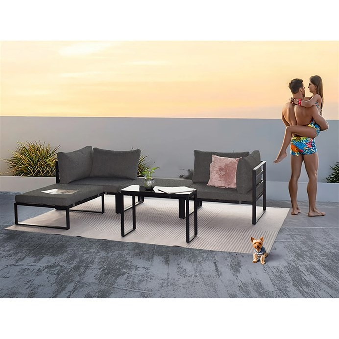 Tento set kombinuje komfort a odolnost, ideální pro relaxaci i posezení s přáteli.