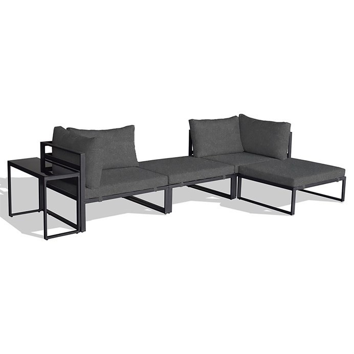 Set je tvořen čtyřmi samostatnými moduly, které lze skládat do libovolných uskupení. Součástí setu jsou dva otomany, dvě křesla a stolek. Jednotlivé části můžete sestavit tak, jak zrovna potřebujete. Rozměry křeslo: 65 × 90 × 75 cm (v x š x h) Rozměry otoman: 35 × 85 × 72 cm (v x š x h) Rozměry stolek: 50 × 75 × 30 cm (v x š x h)