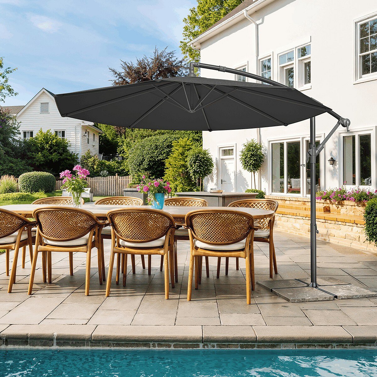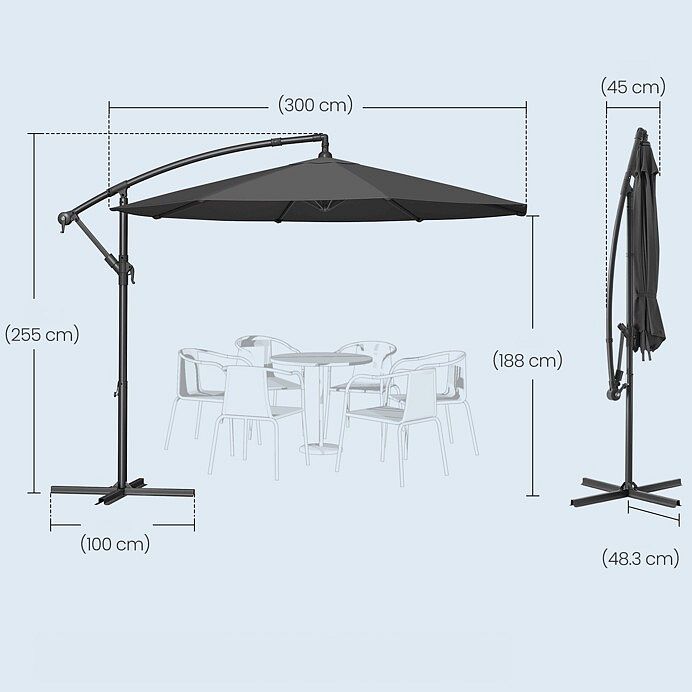 Zahradní závěsný slunečník v moderní šedé barvě je ideálním řešením pro zastínění terasy, zahrady i posezení u bazénu. Velkorysá stínící plocha poskytuje dostatek prostoru pro rodinné stolování i relax s přáteli. Odolná polyesterová tkanina s UV ochranou pomáhá chránit před slunečním zářením a zároveň si zachovává barevnou stálost. Pevná kovová konstrukce s práškovou úpravou zajišťuje stabilitu a dlouhou životnost. Tento produkt značky Autronic představuje praktický a stylový zahradní nábytek pro komfortní letní dny.