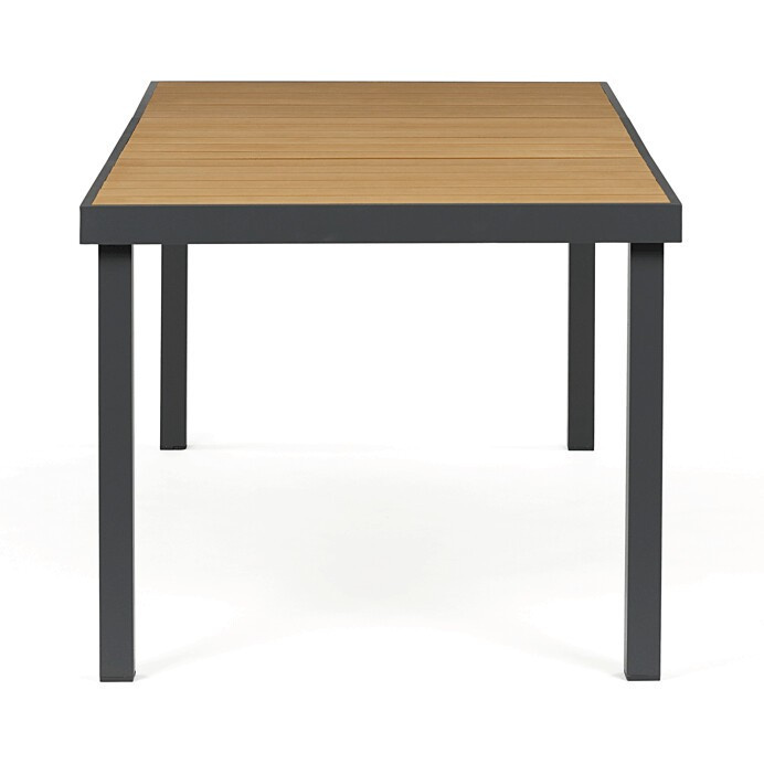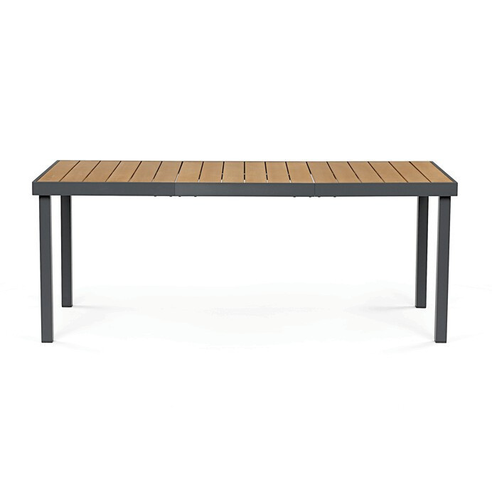 Zahradní stůl o rozměrech 190x90 cm kombinuje pevnou hliníkovou konstrukci v šedém odstínu s vysoce odolnou deskou z polywoodu v přírodních barvách, která je navržena pro dlouhou životnost a snadnou údržbu. Rektifikační nohy umožňují vyrovnání stolu na nerovném terénu, což zajišťuje stabilitu a komfort při používání. Deska stolu je tvořena z materiálu připomínajícího dřevo, který odolává povětrnostním vlivům a zachovává si estetický vzhled i při venkovním použití. Konstrukce je lehká, ale pevná, což usnadňuje manipulaci a zároveň poskytuje dostatečnou nosnost pro běžné zahradní aktivity. Tento stůl je vhodný pro různé venkovní prostory, kde je kladen důraz na funkčnost i design.