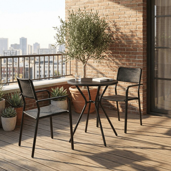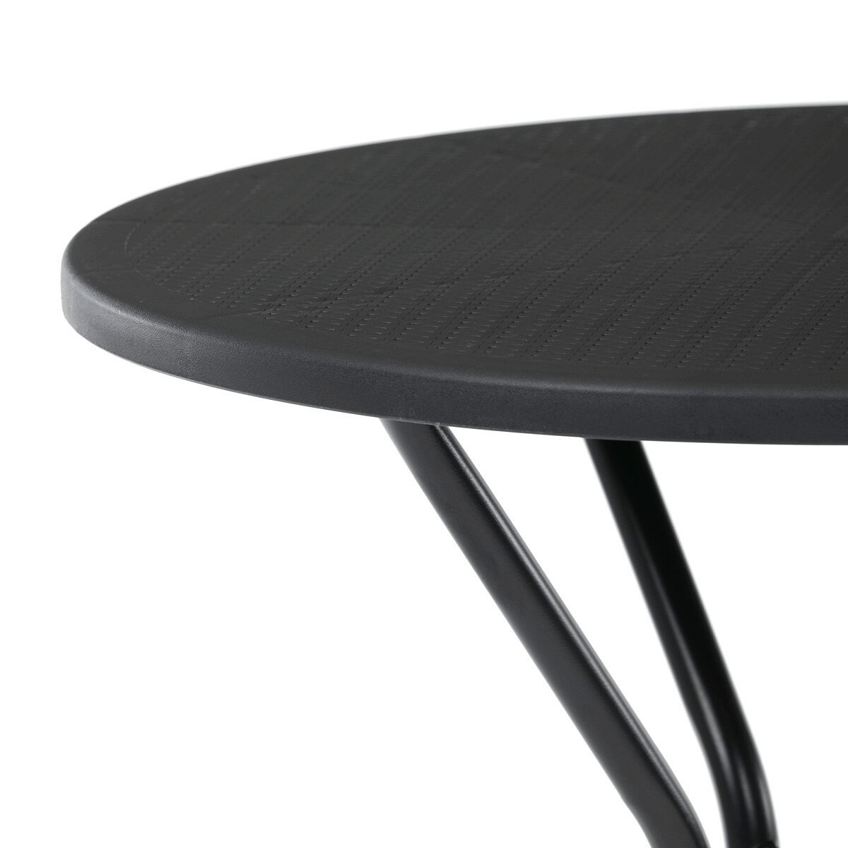 Zahradní stůl s černou plastovou deskou a stabilní kovovou podnoží nabízí praktické řešení pro venkovní posezení. Kulatý tvar desky s jemnou texturou zajišťuje snadnou údržbu a odolnost vůči povětrnostním vlivům. Kovová podnož je opatřena práškovým lakem, který chrání proti korozi a zvyšuje životnost stolu. Díky pevné konstrukci stůl poskytuje stabilní oporu pro různé aktivity na zahradě či terase. Kompaktní rozměry umožňují snadné umístění i v menších prostorách.