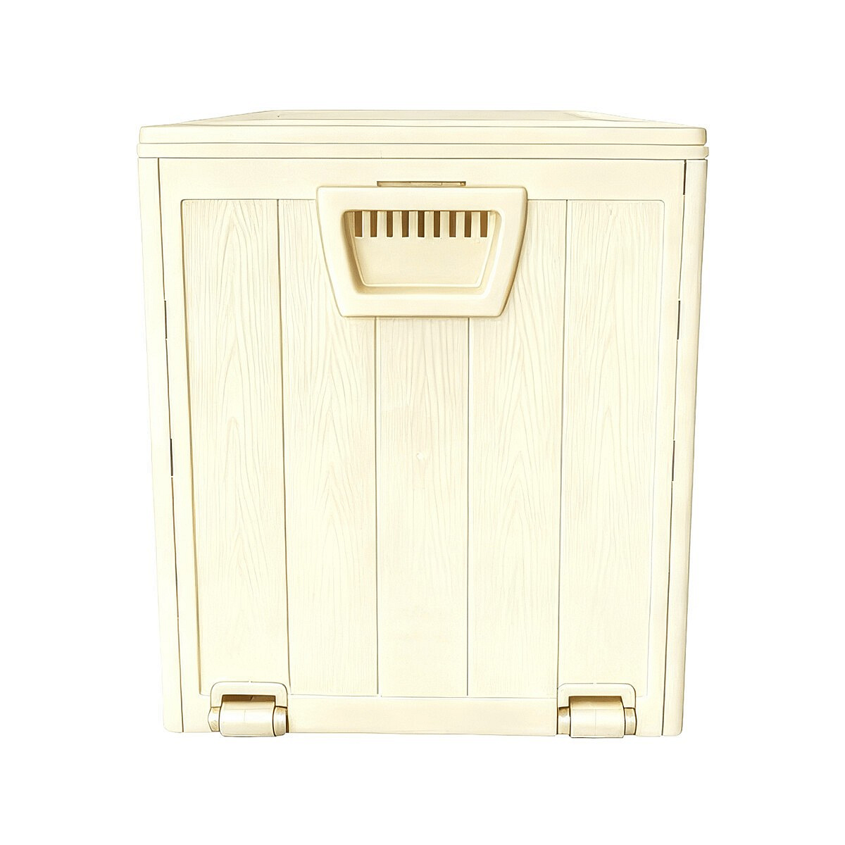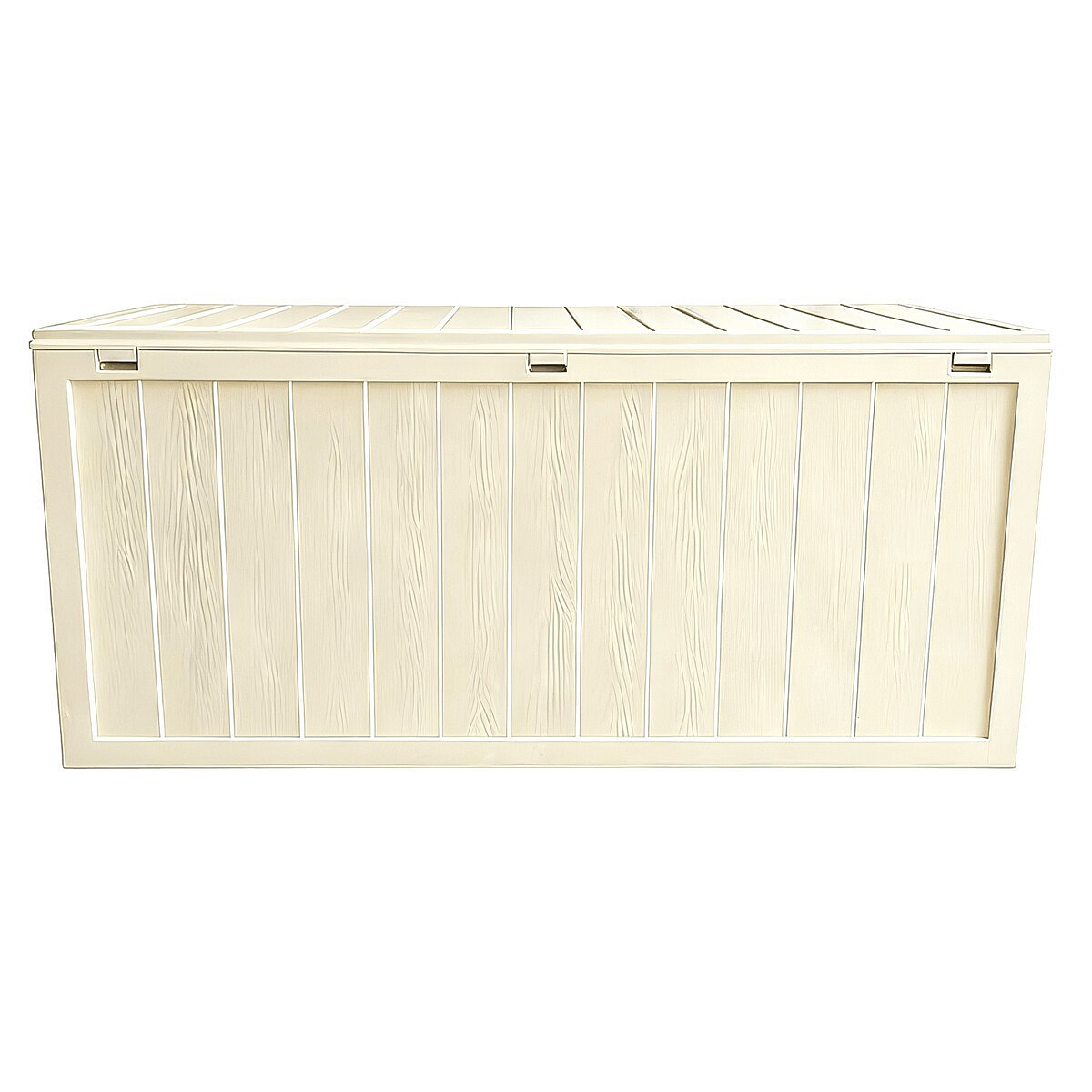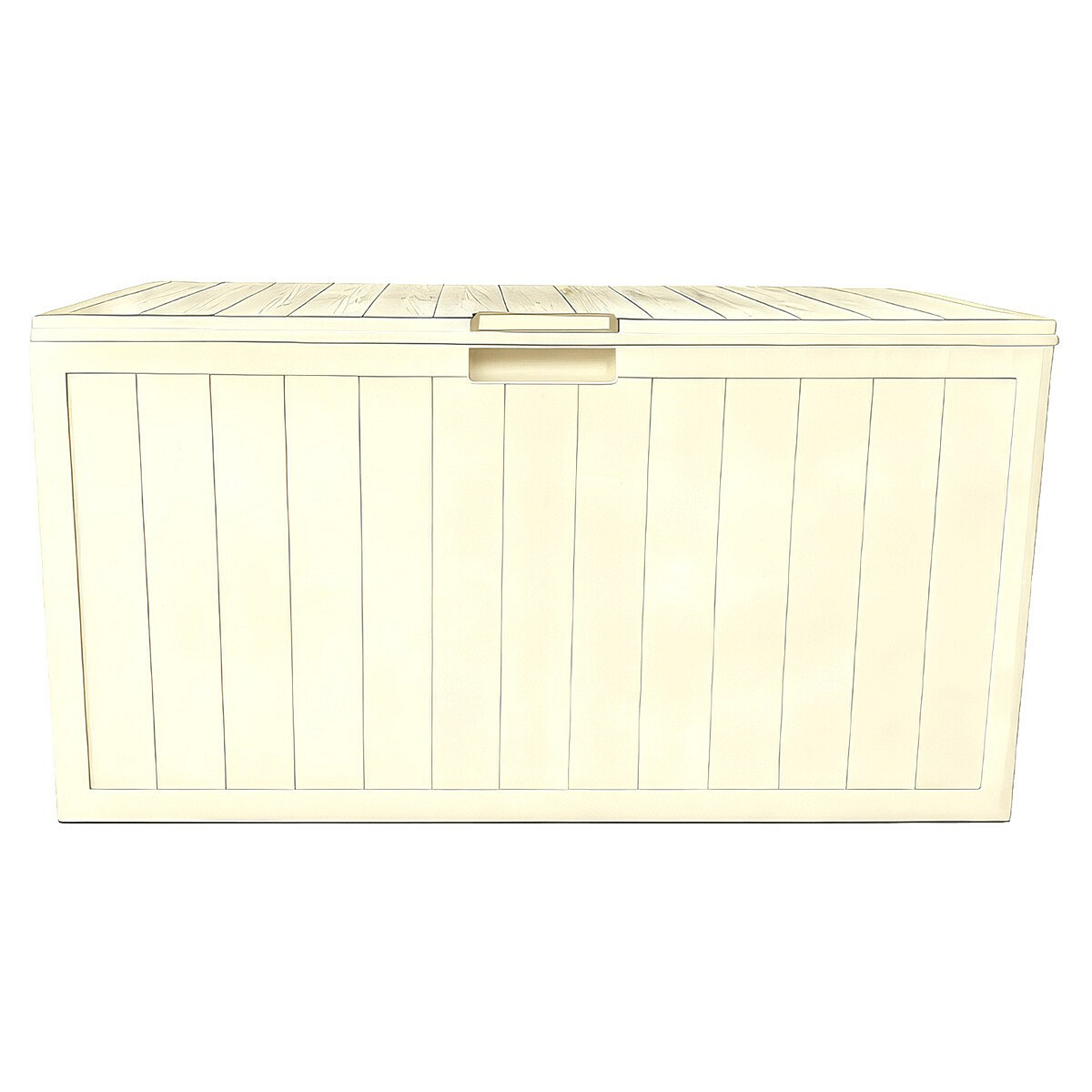 Zahradní uložný box v barvě cashmere je vyroben z pevného plastu, který je navržen pro dlouhou životnost a snadnou údržbu. Jeho prostorný objem 280 litrů poskytuje dostatek místa pro uskladnění zahradního náčiní, polštářů nebo dalších doplňků. Box má praktické víko s integrovaným úchytem pro snadné otevírání a boční madla pro pohodlné přenášení. Povrch s texturou připomínající dřevo dodává boxu přírodní vzhled, který se hodí do různých zahradních aranžmá. Kompaktní rozměry umožňují umístění na terasu, balkon i do zahrady.