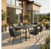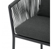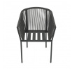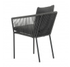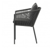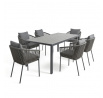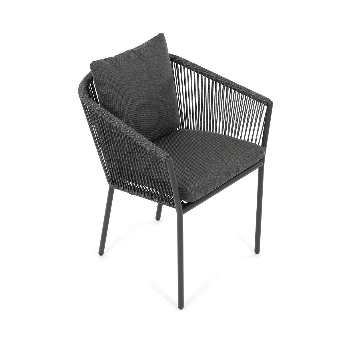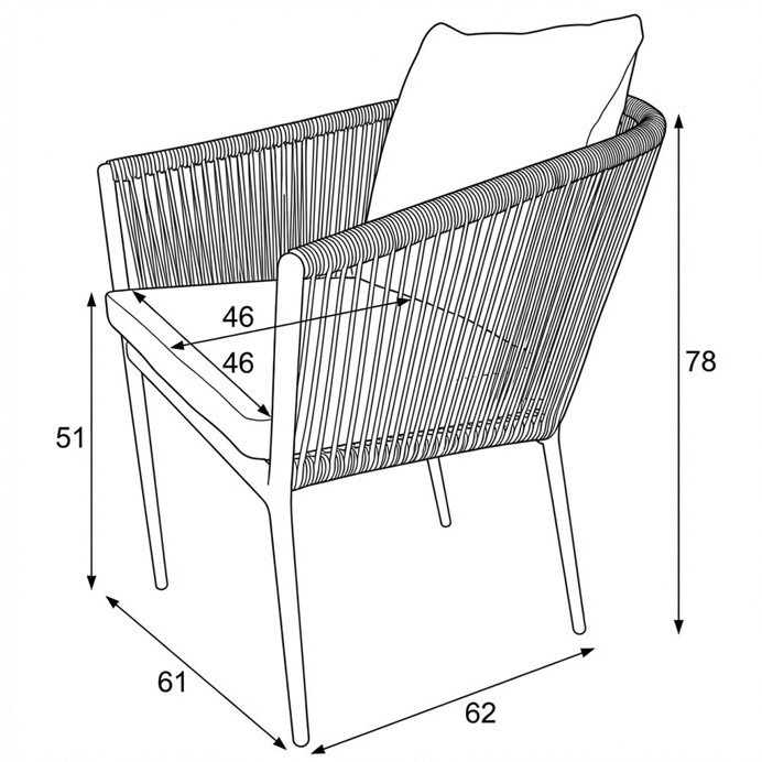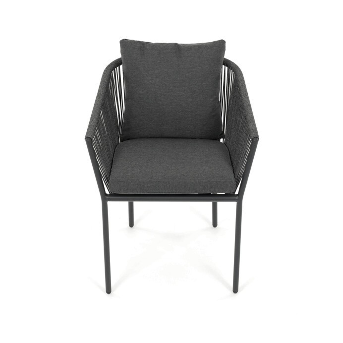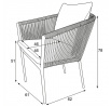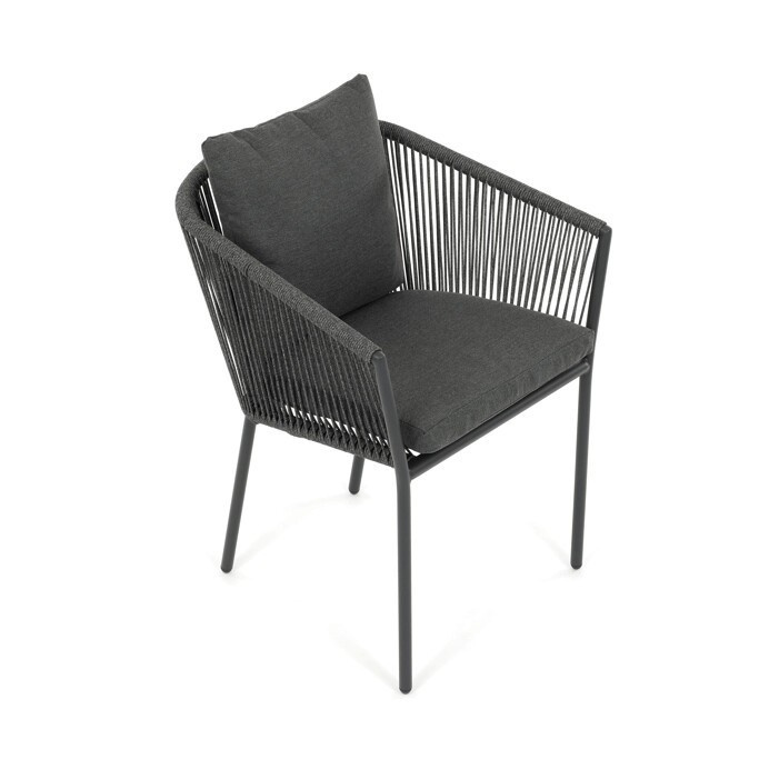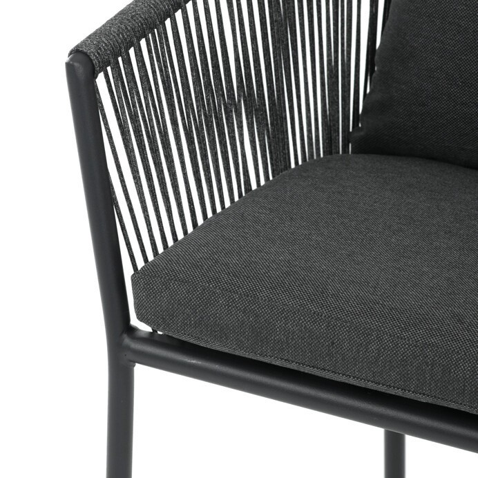 Zahradní židle s pevnou hliníkovou konstrukcí v šedém odstínu nabízí stabilitu a dlouhou životnost i při venkovním použití. Opěradlo a sedák jsou čalouněné rychleschnoucí šedou látkou, která je voděodolná a snadno se udržuje, což zajišťuje komfort i v proměnlivém počasí. Design židle doplňuje moderní provedení s opletením z odolných vláken, které přispívá k celkové pevnosti a vizuální lehkosti. Díky ergonomickému tvaru opěradla a sedáku poskytuje pohodlné posezení během zahradních posezení. Nosnost židle odpovídá standardním požadavkům pro venkovní nábytek, což ji činí vhodnou pro každodenní užívání.