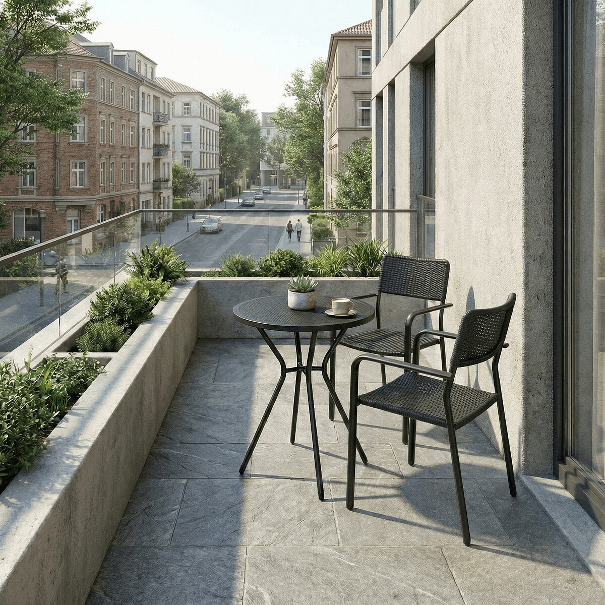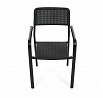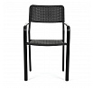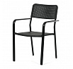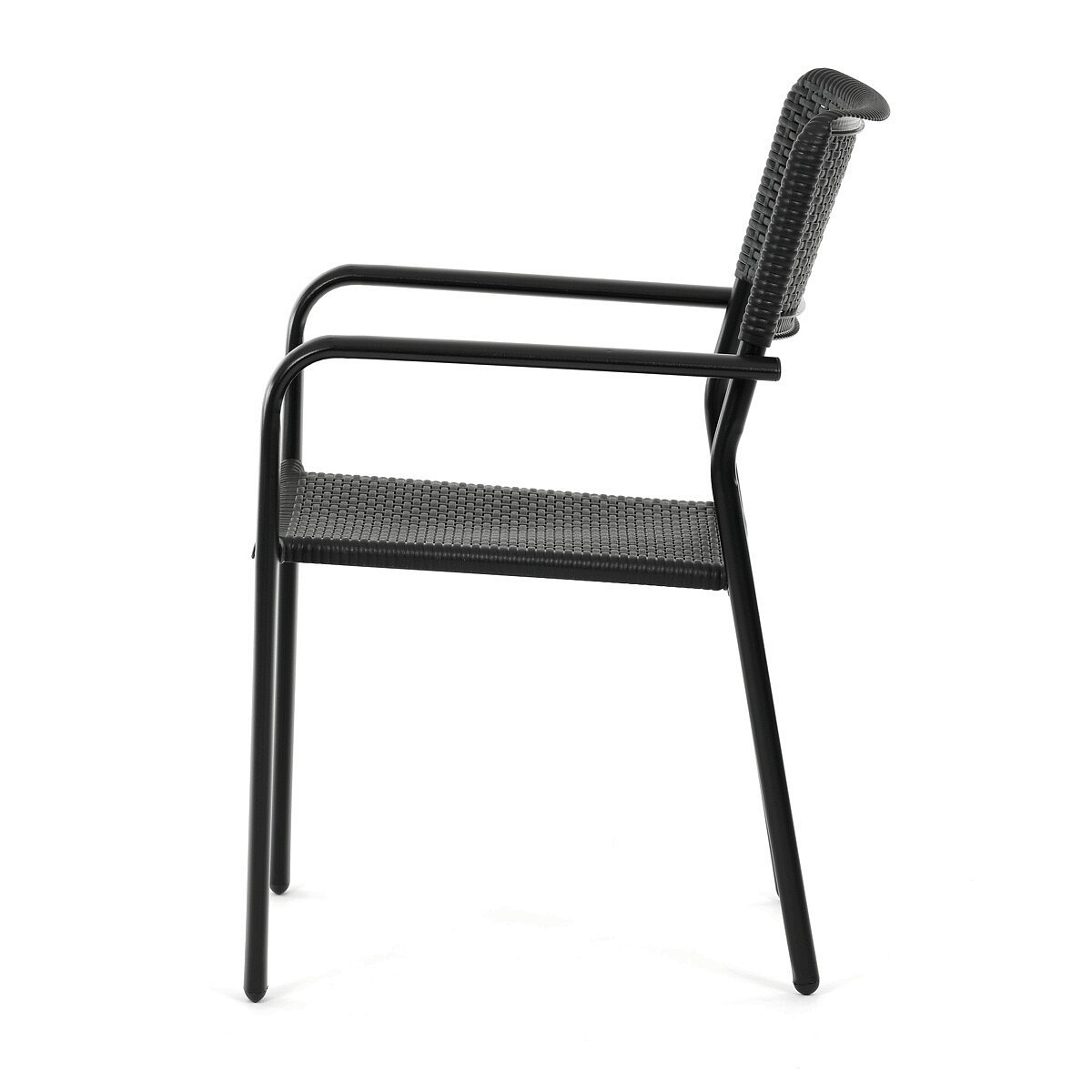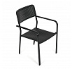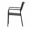Zahradní židle v černém provedení kombinuje pevný kovový rám s odolným plastovým sedákem a opěradlem, které jsou navrženy pro dlouhou životnost a snadnou údržbu. Díky stohovatelnému designu umožňuje efektivní skladování a úsporu místa. Područky zajišťují pohodlné opření rukou během posezení. Jednoduchý a praktický tvar židle se hodí do různých venkovních prostor, jako jsou terasy, zahrady nebo balkony.
