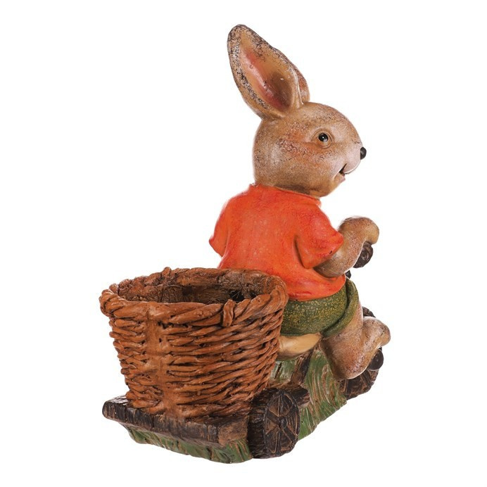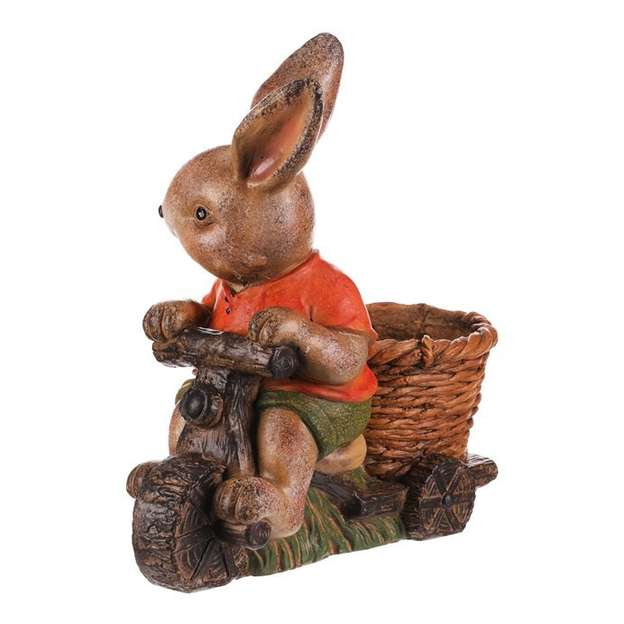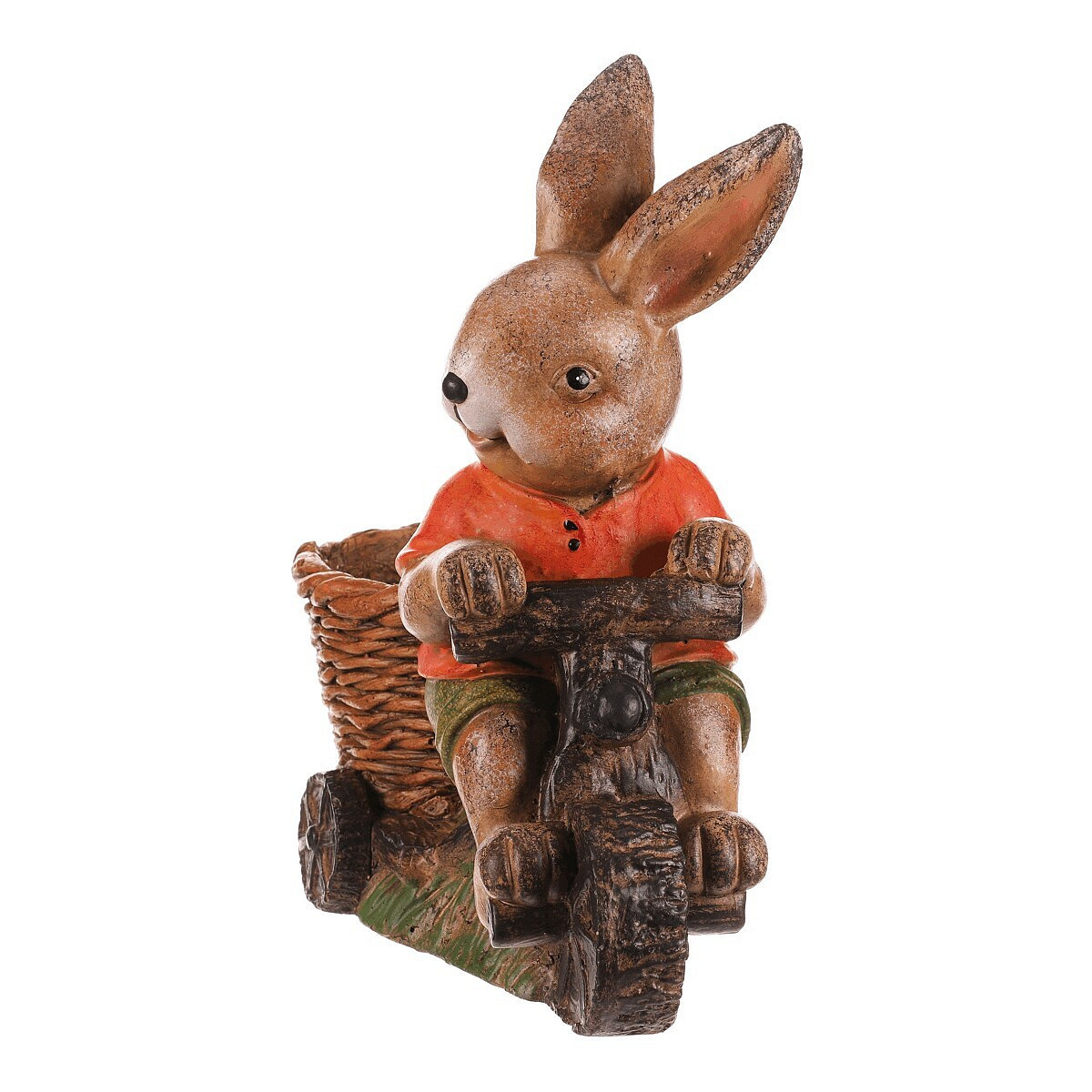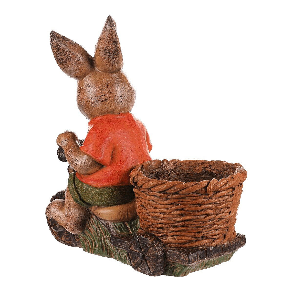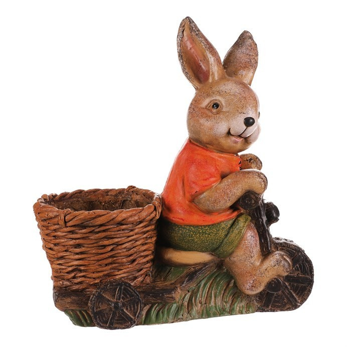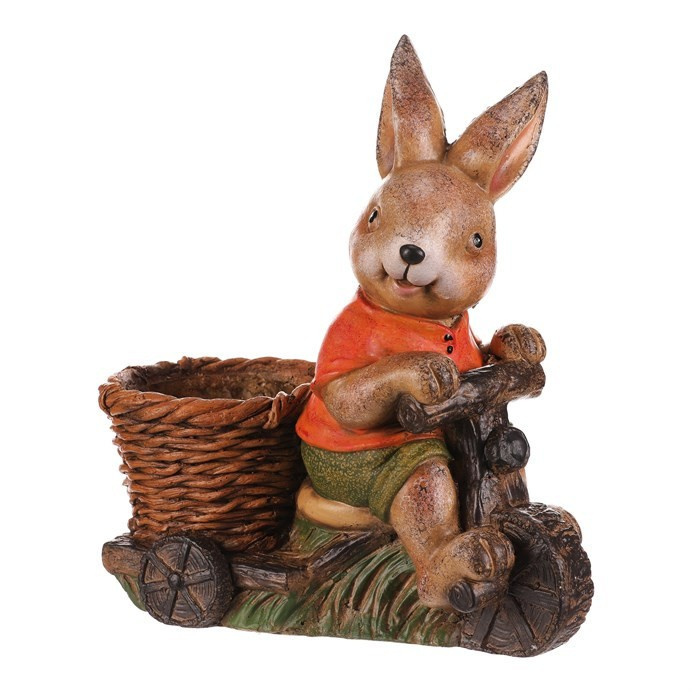 Dekorativní soška zajíce na sekačce s košíkem je vyrobena z magnesia s přírodní hnědou patinou, která zdůrazňuje detailní zpracování a texturu povrchu. Soška kombinuje hravý design s praktickým využitím jako obal na květiny, což ji činí vhodnou pro venkovní i vnitřní prostory. Košík za zajícem nabízí prostor pro květinovou aranžmá, zatímco samotná figurka přináší do prostoru příjemnou a přátelskou atmosféru. Díky kvalitnímu provedení je dekorace navržena pro dlouhou životnost a snadnou údržbu.