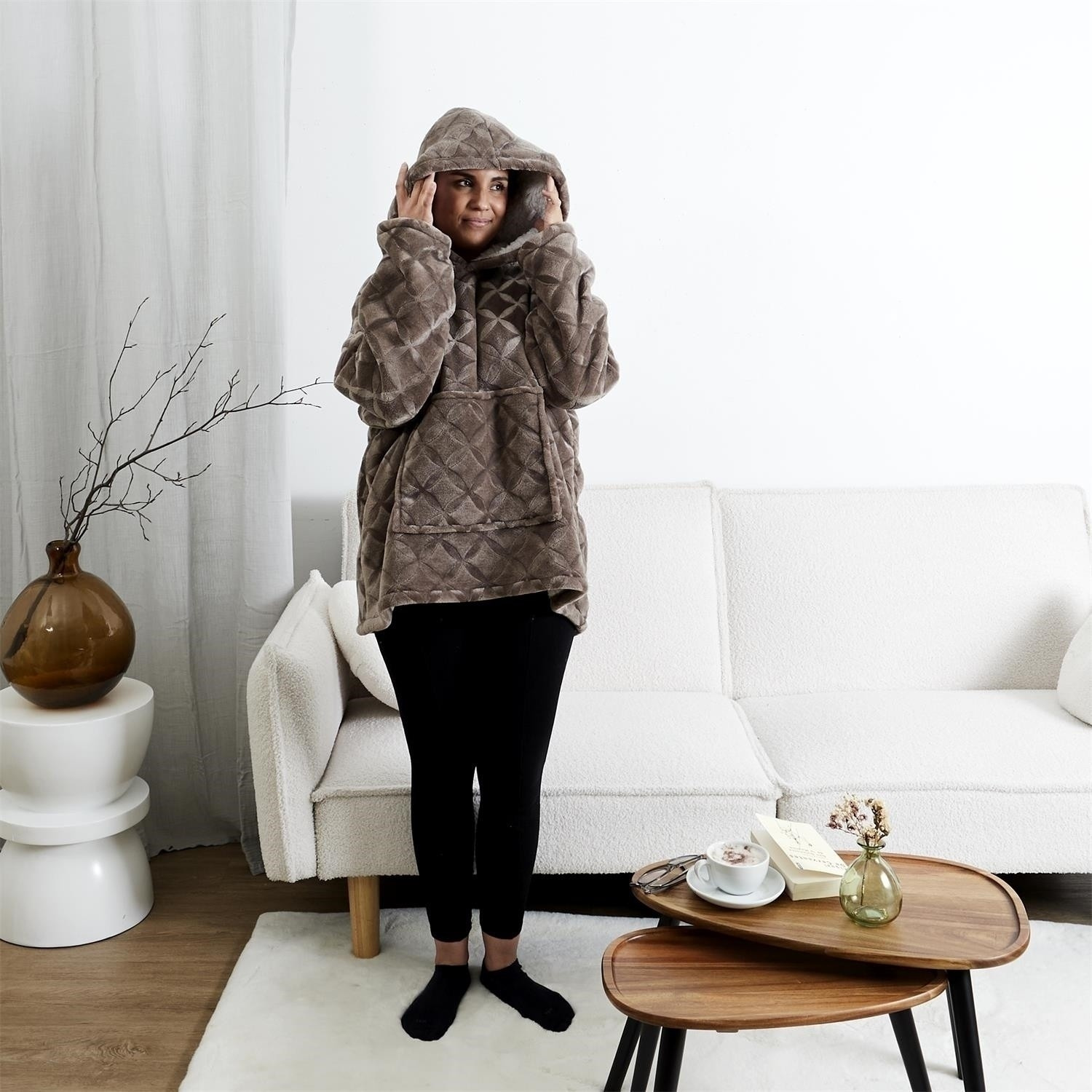 Dlouhá mikina sherpa je ideální pokrývka na dlouhé zimní večery. Mikina snuddie je vybavena kapucí a přední kapsou. Velmi příjemný a teplý na dotek materiál zaručuje dlouhé pohodlné filmové večery. Prát při max teplotě 30 stupňů. Nežehlit. Gramáž tkaniny 240g/m2 tkanina 100% polyester