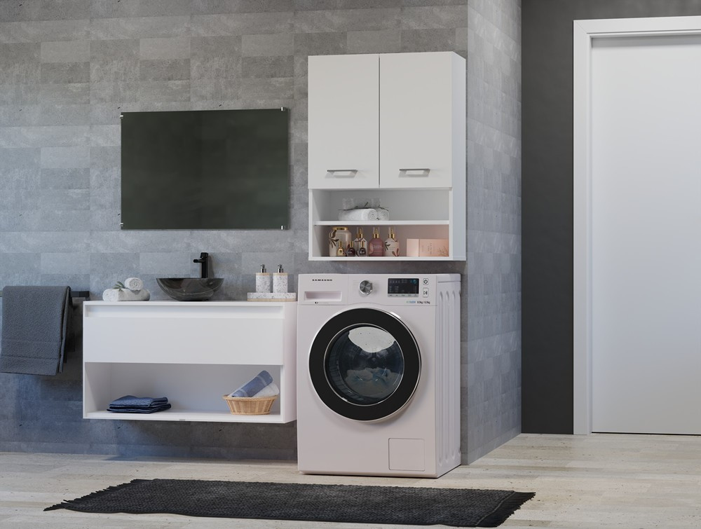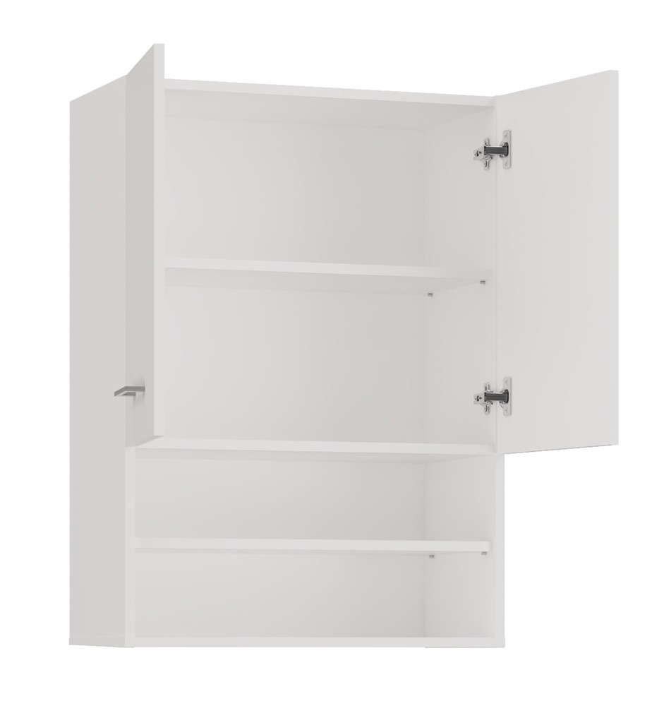 Moderní závěsná skříňka Pema v minimalistickém designu je dokonalým řešením pro malé koupelny. Splní očekávání všech, kteří oceňují praktická řešení. Skříňka má 2 otevřené police a 2 police skryté za dvířky (čela dvířek jsou vysoká 58 cm). Je vyrobená ze snadno udržovatelné laminované desky, hrany jsou povrchově upravené ABS plastem (vyznačuje se vysokou mechanickou a chemickou odolností).