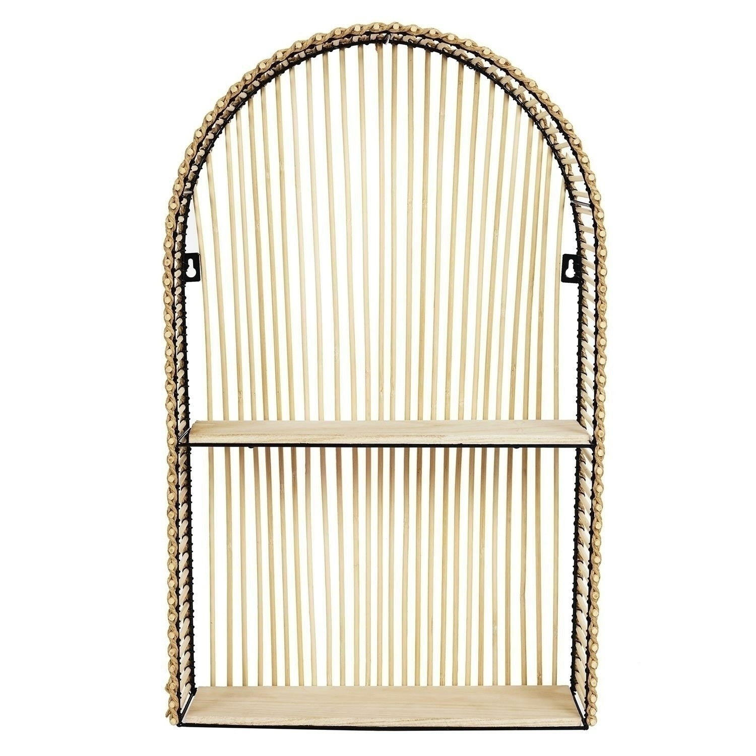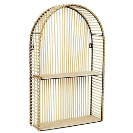 Zaoblená police Bali je kombinací kovového rámu, dřevěných polic a ratanu, který byl dekorativně propleten. Polička Bali zajímavého tvaru byla zachována ve stylu boho. Jeho barvy a materiály korespondují s přírodou.