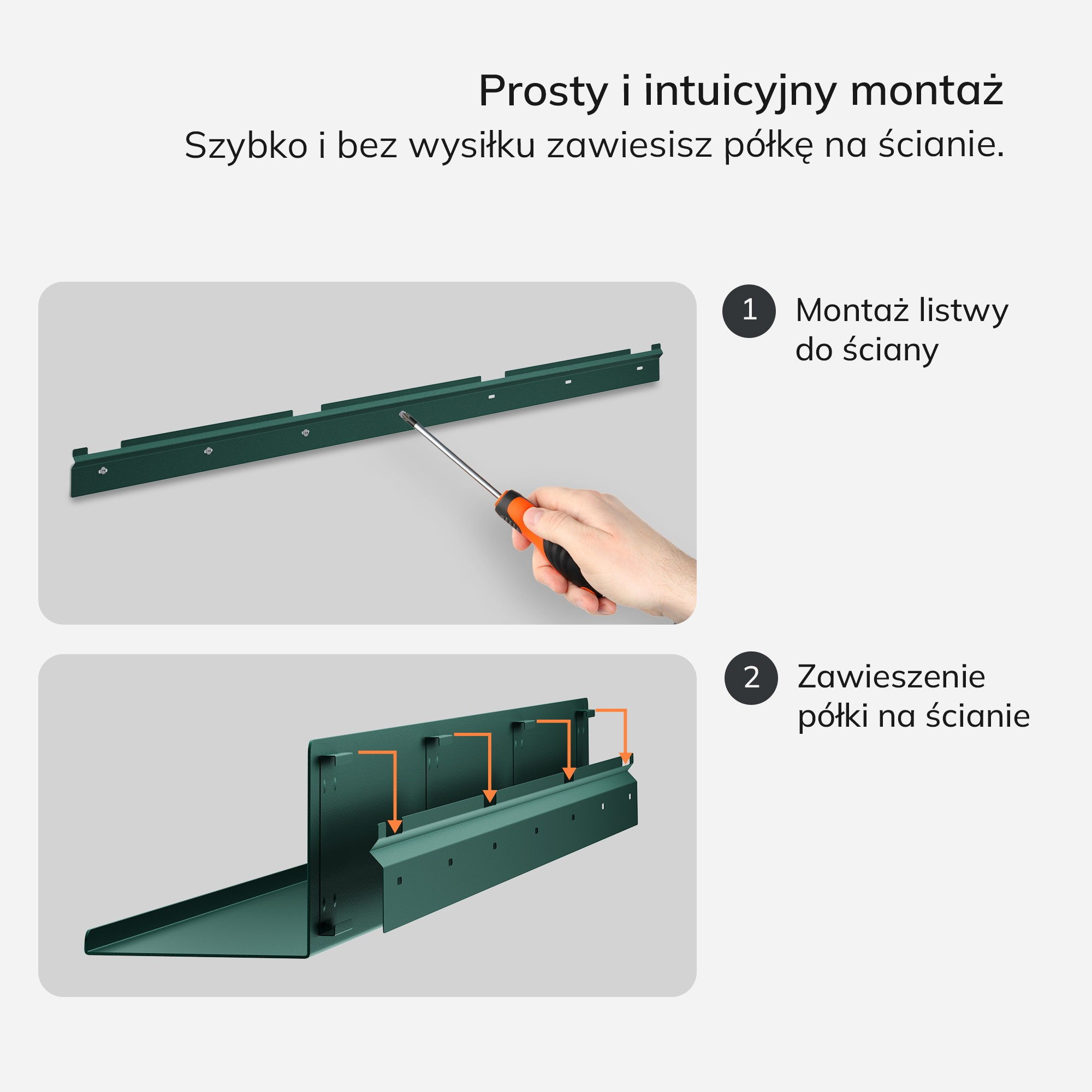 Montáž police JOANNE je rychlá a jednoduchá. Díky intuitivnímu systému upevnění ji zvládne každý. A co víc, modulární design police vám umožňuje vytvářet různé aranžmá ve vertikálním i horizontálním směru. Můžete si tak vytvořit vlastní unikátní stěnu, která bude přesně odpovídat vašim potřebám a vkusu.