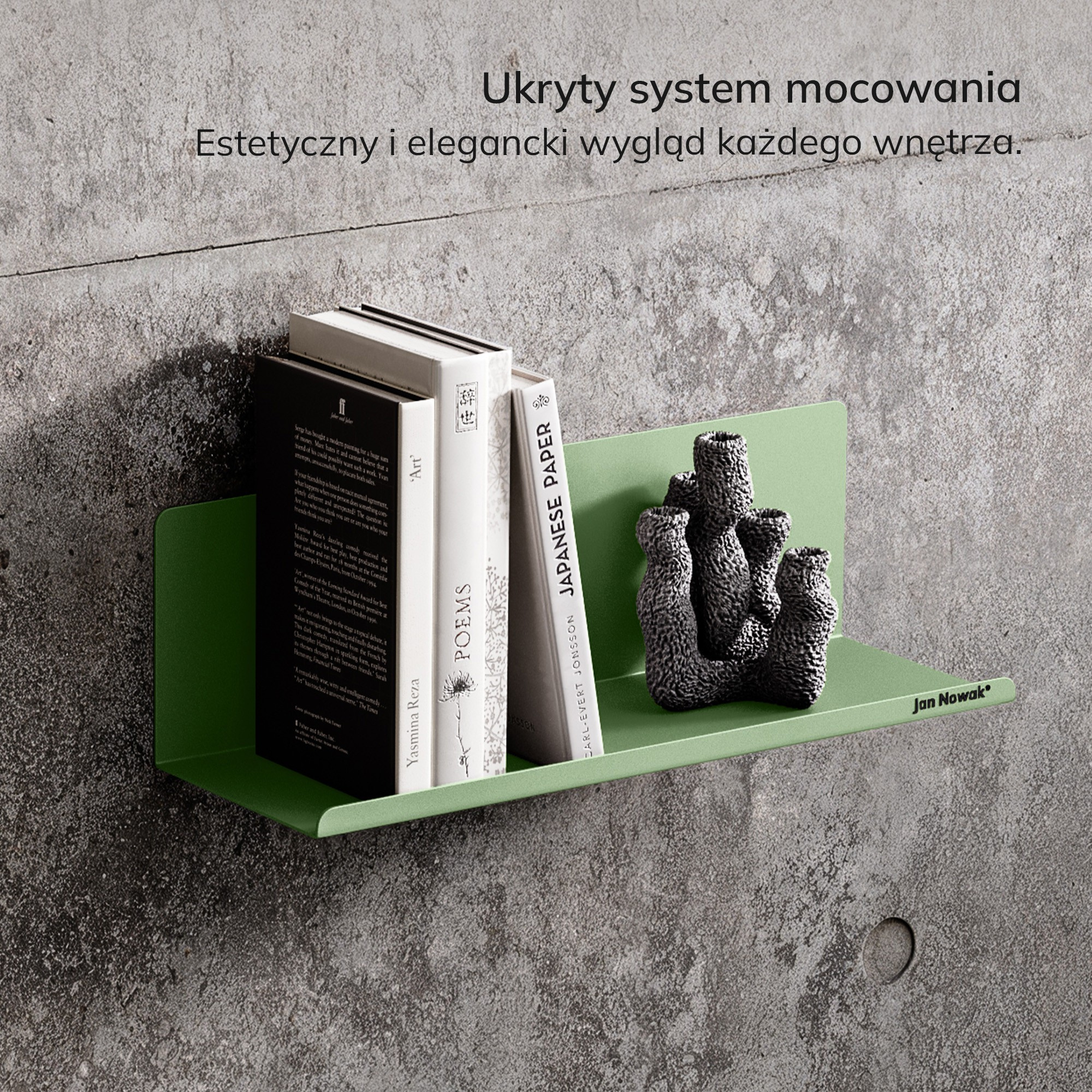 Představujeme vám závěsnou polici JOANNE, dokonalou kombinaci funkčnosti, elegance a moderního designu. Tato police, zahalená do jemného pastelově zeleného odstínu, vnese do vašeho domova svěží vánek a harmonickou atmosféru. Nechte se okouzlit jejím minimalistickým vzhledem a proměňte svůj prostor v oázu klidu a inspirace.