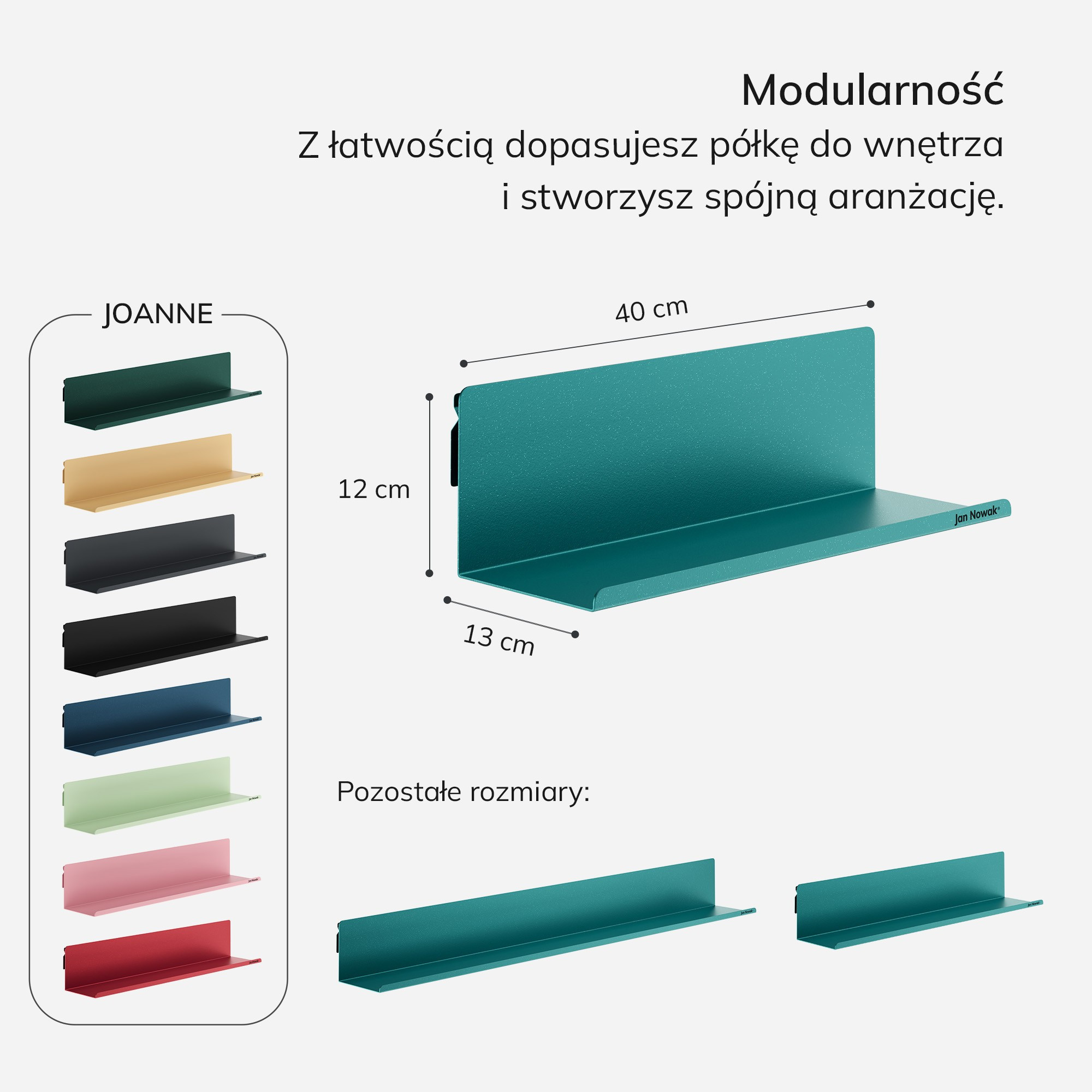 Představujeme vám závěsnou polici JOANNE, mistrovské dílo designu a praktičnosti, které promění každý prostor v oázu stylu a pořádku. Tato elegantní police, inspirovaná hlubinami oceánu, přináší do vašeho domova závan svěžesti a moderního luxusu. Nechte se okouzlit jejím jedinečným mořským odstínem a proměňte své stěny v umělecké dílo.