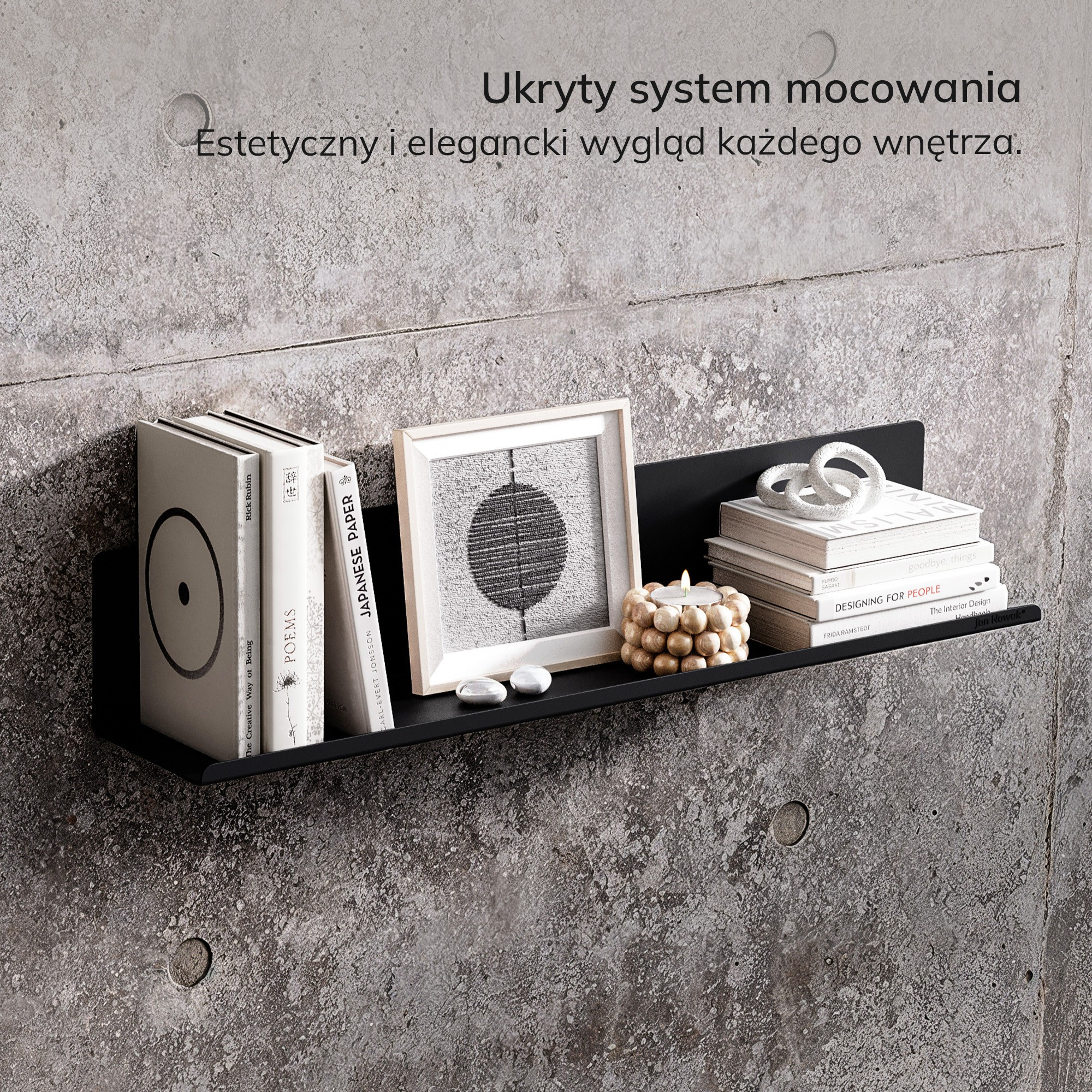 Montáž police JOANNE je rychlá a jednoduchá. Díky skrytému systému upevnění vypadá police mimořádně esteticky a elegantně, bez viditelných podpěr. Stačí připevnit lištu ke zdi a zavěsit polici. Modulární konstrukce umožňuje sestavování několika polic vodorovně nebo svisle, což vám dává plnou svobodu uspořádání i v menších prostorech. Vytvořte si vlastní originální sestavu, která bude dokonale odpovídat vašim potřebám a vkusu.