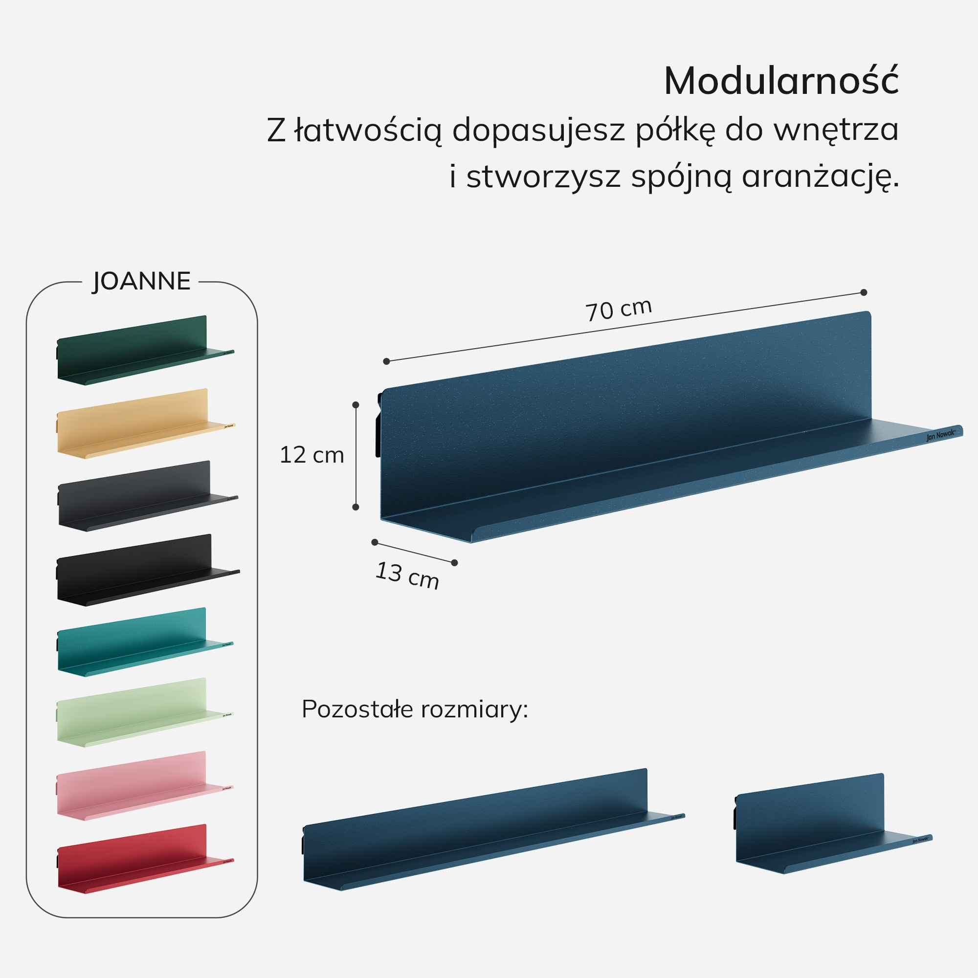 Závěsná police JOANNE je ideální volbou pro ty, kteří hledají kombinaci elegance, funkčnosti a odolnosti. Objednejte si ji ještě dnes a proměňte svůj interiér v oázu stylu a pořádku!