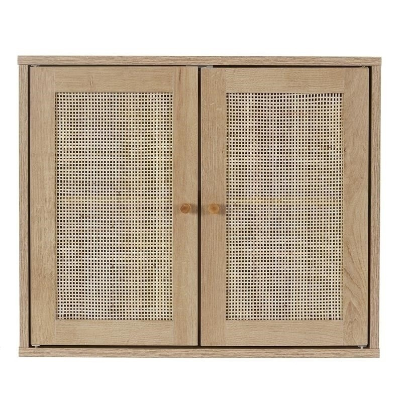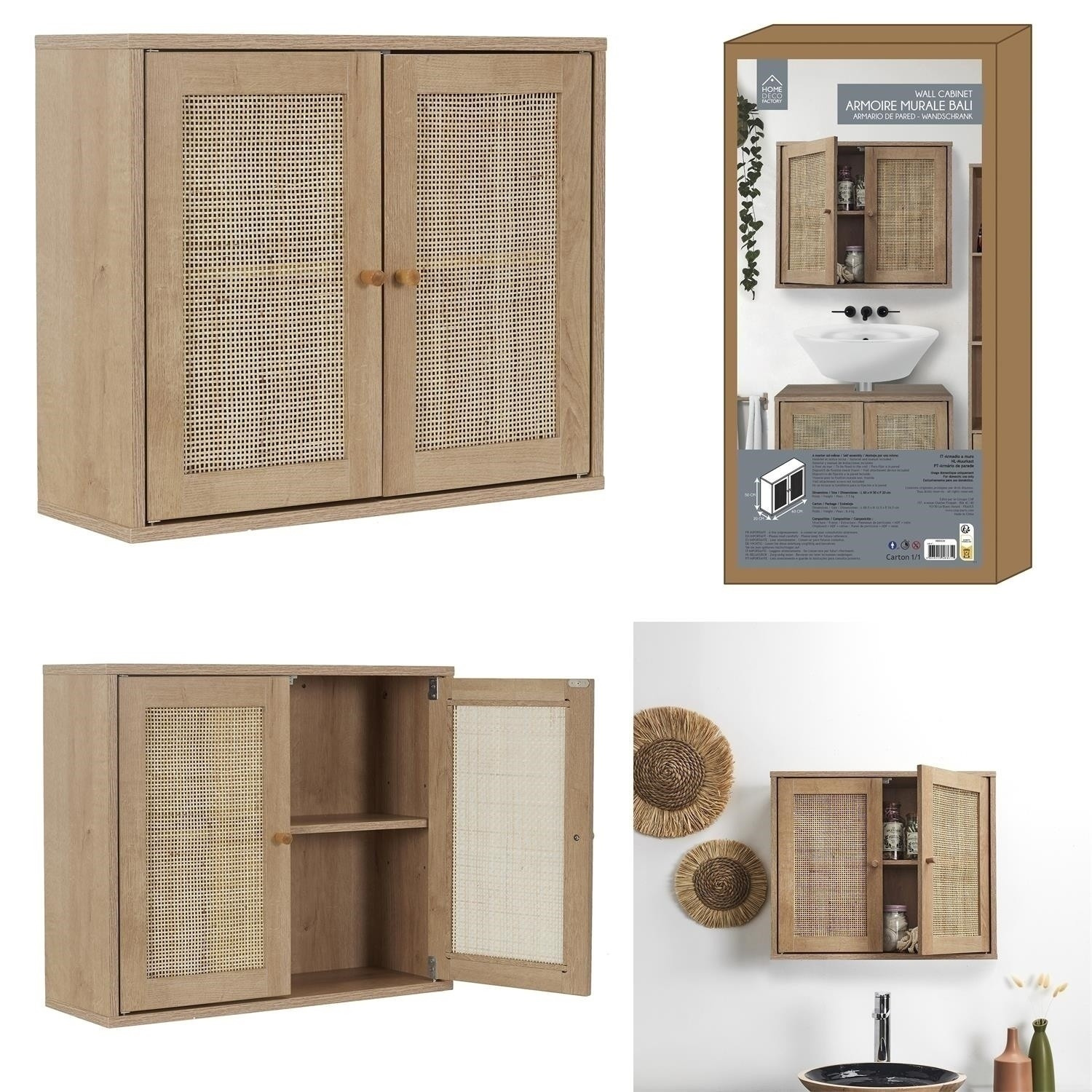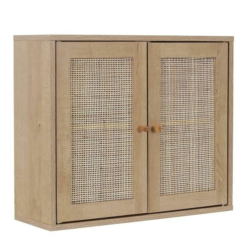 Závěsná skříňka Bali je ideální nábytek nad pračku nebo nad umyvadlo. Díky skříňce získáme více místa pro uložení kosmetiky nebo čisticích prostředků. Skříňka k vlastní montáži. Skříňka vyrobená z MDF desky s dýhou imitující dub. Čela dodatečně ozdobená ratanovými vložkami.