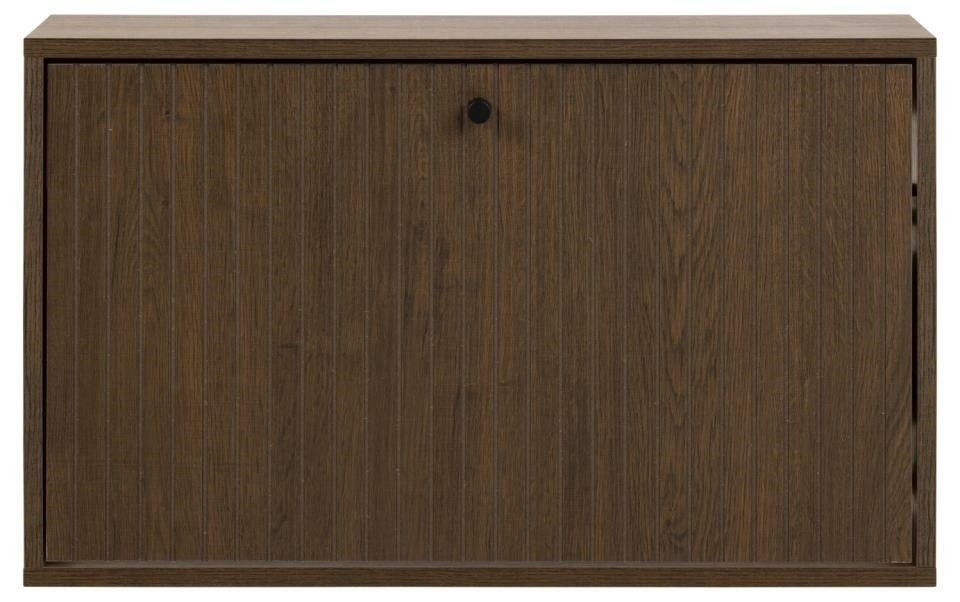 Skříňka na boty s vzhledem kouřového dubu s lamelovým čelem dodá styl a praktičnost do předsíně. Kontrastní vzhled kouřového dubu doplněný černými akcenty vytváří dobře vyvážený vizuální efekt. Pověs ji na stěnu, abys využil prostor a ukládal boty mimo dohled. Skříňka na boty s lamelovým čelem. Možnost montáže na stěnu. Snadno udržovatelný povrch s vzhledem kouřového dubu. Certifikát FSC. Navrženo designérem Lasse Cha Pedersenem a chráněno výhradně pro Acton. Rozměry kartonu: 81x48x10cm, hmotnost 10kg.