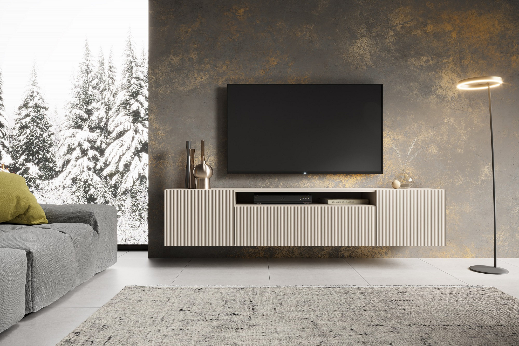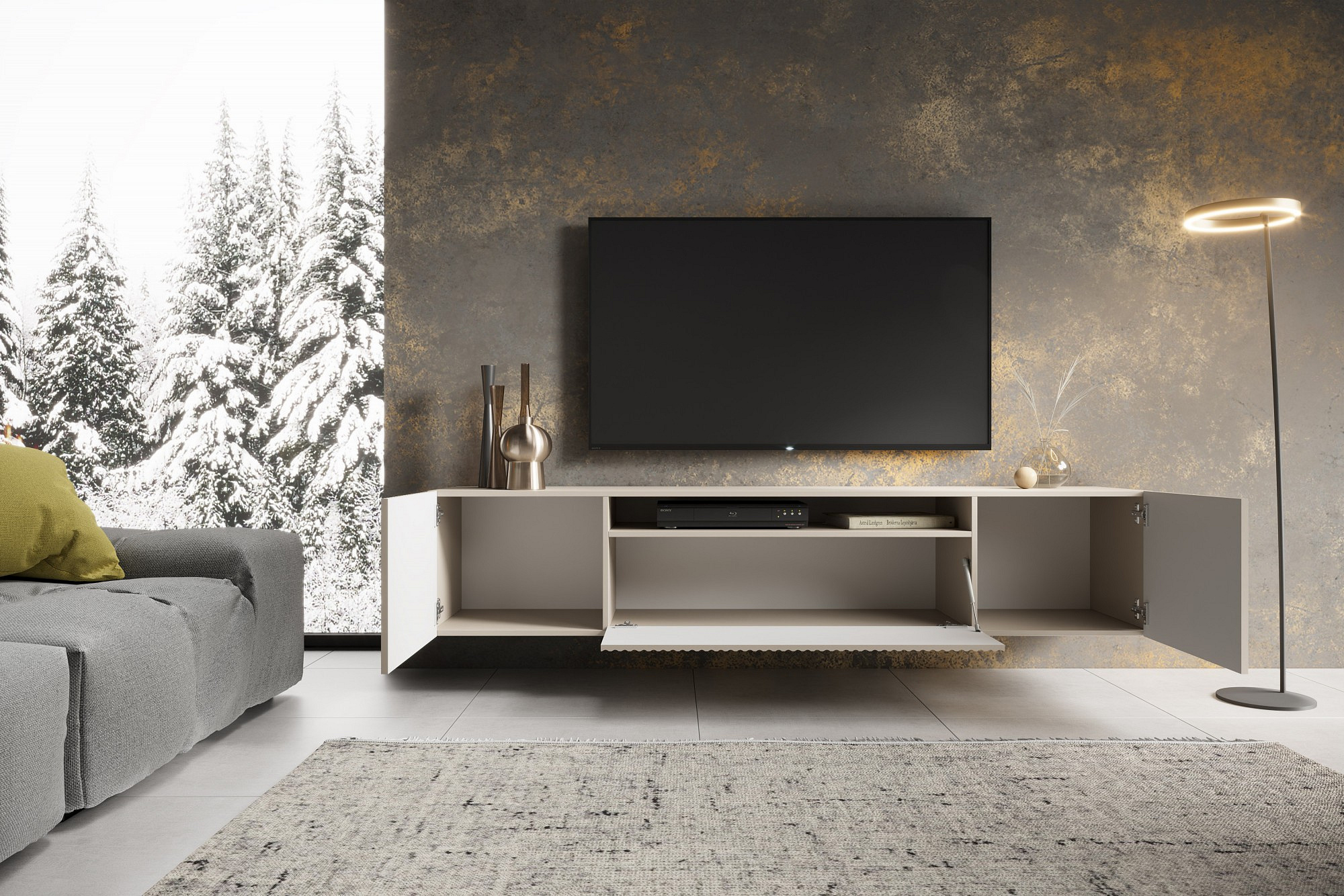 Závěsná TV skříňka NOEMI Kašmír+Kašmír