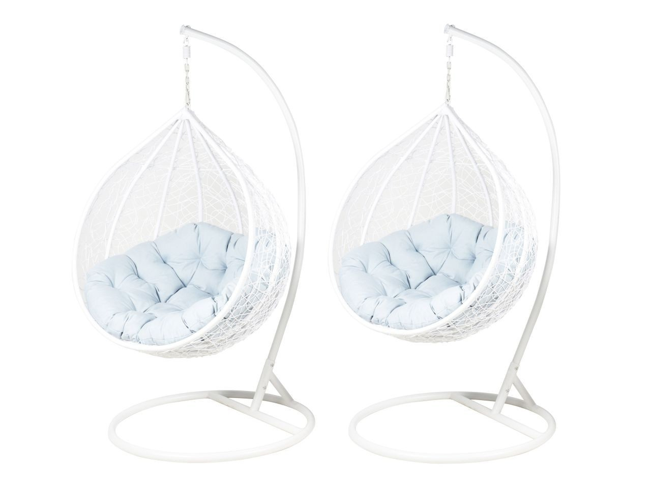 Závěsná zahradní křesla - bílá šedé sedadlo - sada 1+1 F-03