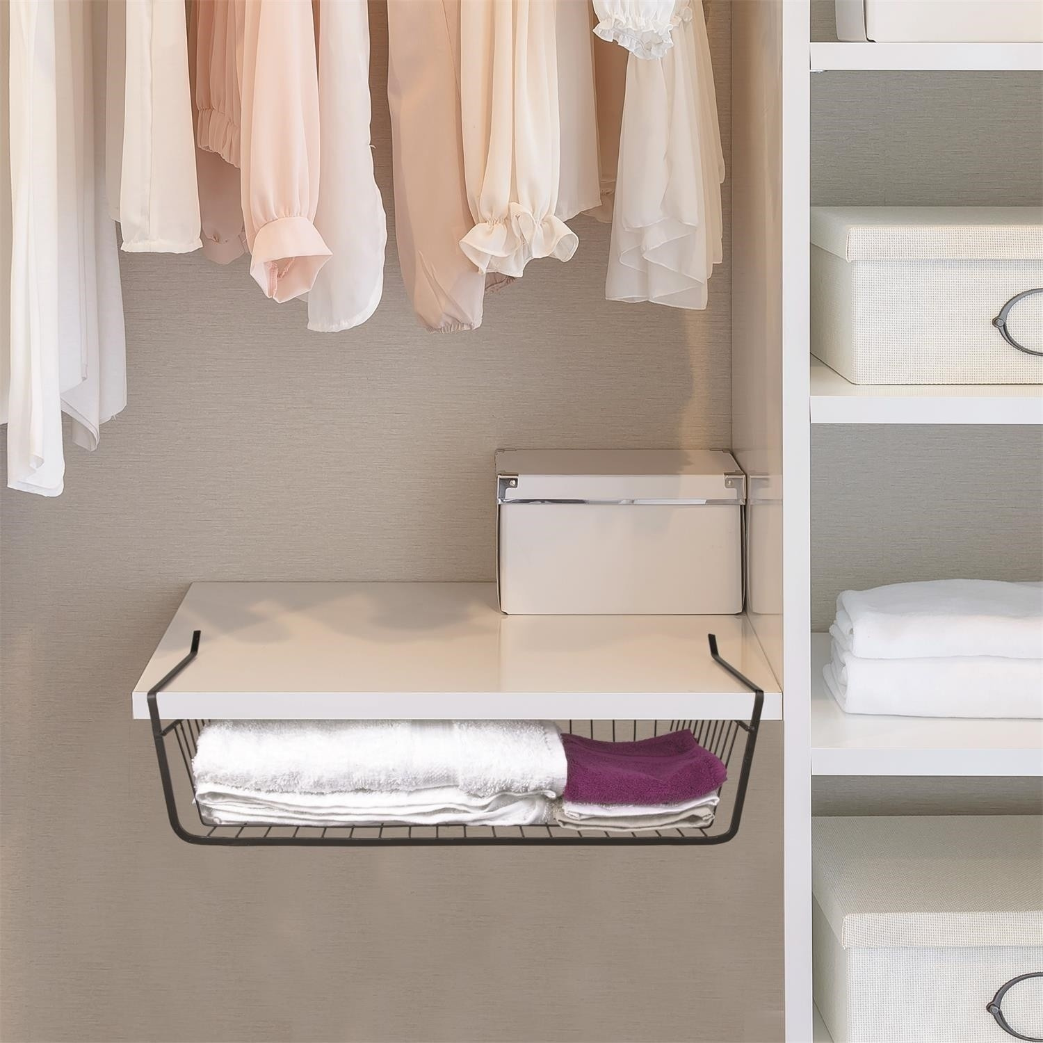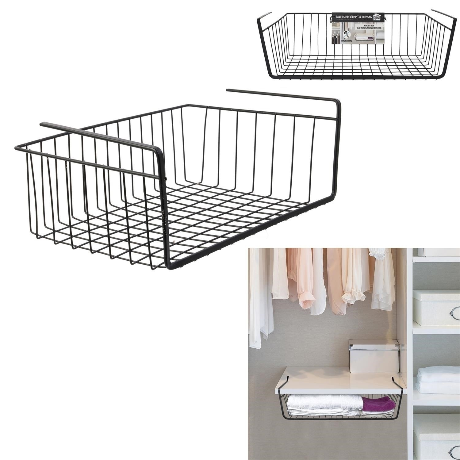 Optimalizuj úložný prostor ve svých skříňkách díky tomuto závěsnému drátěnému koši. Kovový koš je kompatibilní se standardními policemi v regálech. Koš bude ideální na koření nebo dokonce i na oblečení.