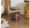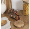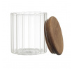 Sklenice na skladování byla vyrobena ze skla se zajímavým rýhovaným tvarem. Sklenice byla dokončena dřevěným víčkem z akáciového dřeva. Silikonové těsnění, které bylo namontováno na víčku, zaručuje těsnost a pevné uzavření sklenice. Nelze mýt v myčce, Nelze používat v troubě, Nelze používat v mikrovlnné troubě. Vhodné pro styk s potravinami