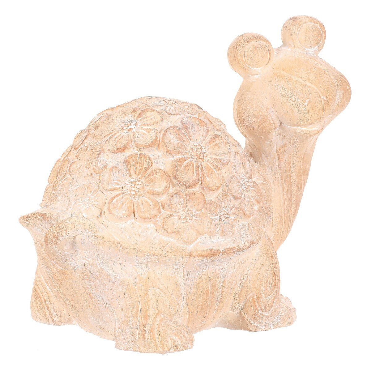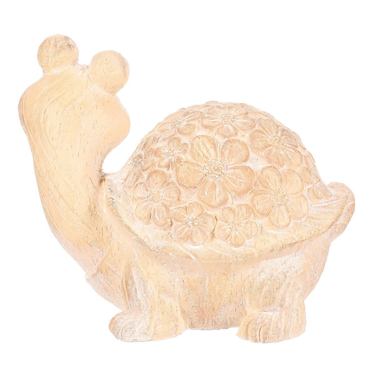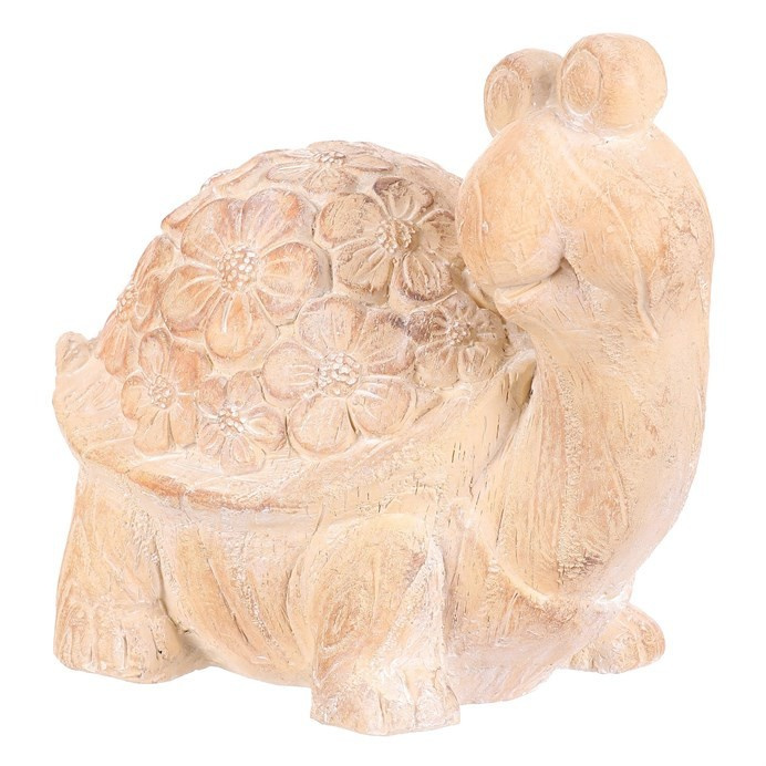 Roztomilá figurka želvy z polyresinu, která je zdobena květinovým vzorem, přináší do vašeho venkovního prostoru příjemné oživení. Realistická imitace dřeva s krásnou strukturou a viditelnými letokruhy dodává této dekoraci na autentičnosti, což dokonale ladí se zahradním prostředím. Zkrášlete svá zákoutí touto kouzelnou figurkou, která zaujme nejen vás, ale i všechny vaše návštěvníky.