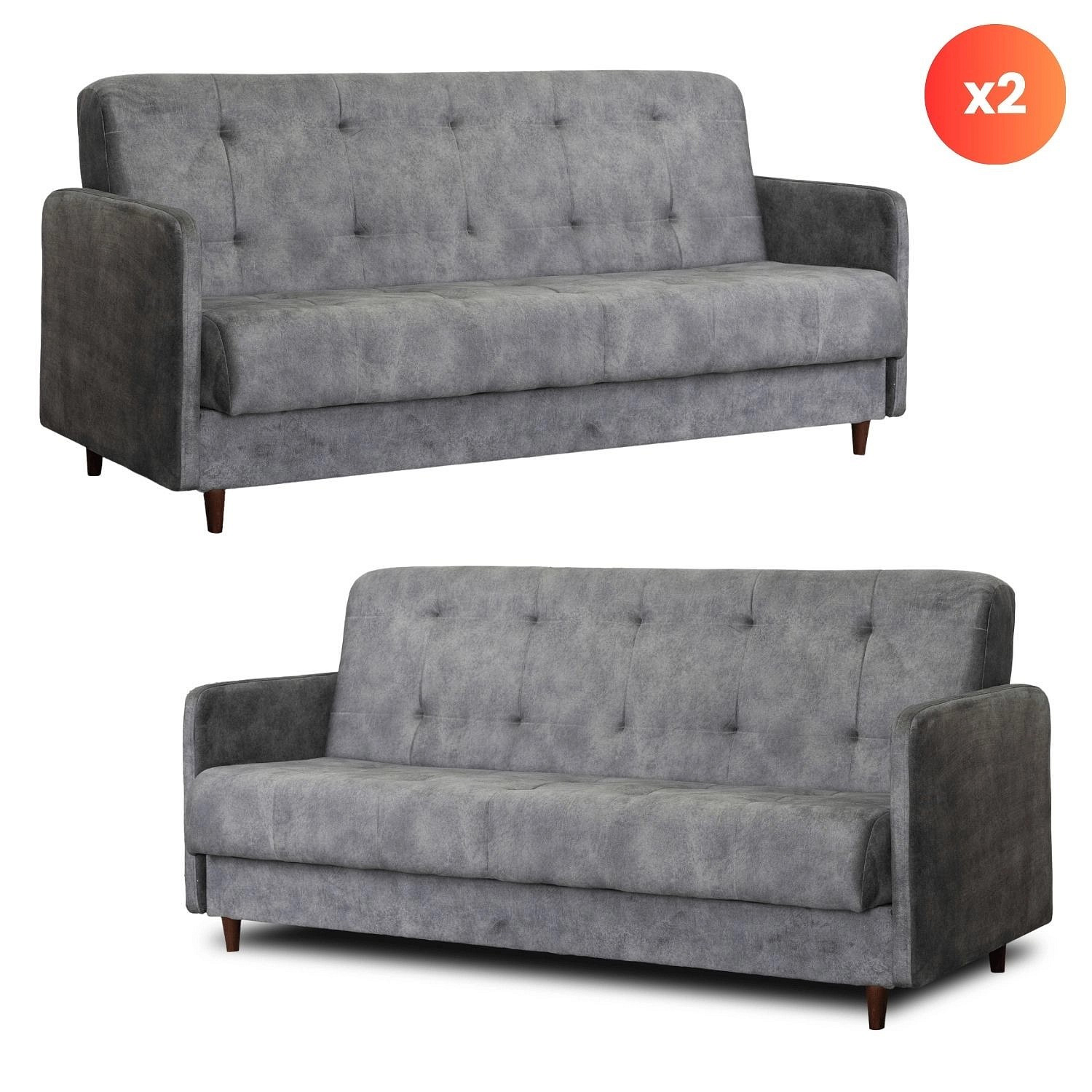 Sada 2x Rozkládací Pohovka TIVOLI Šedá