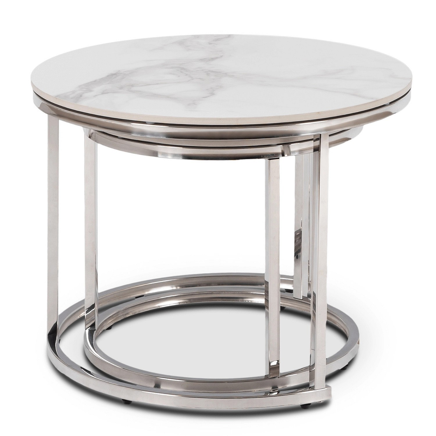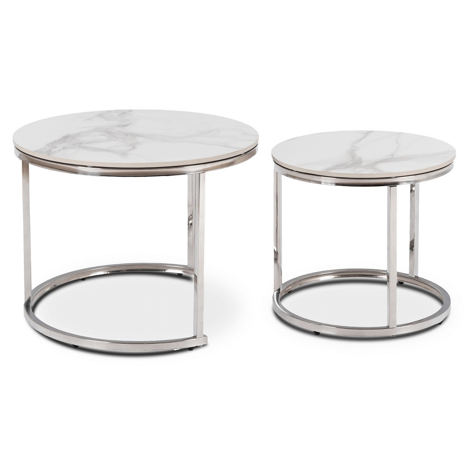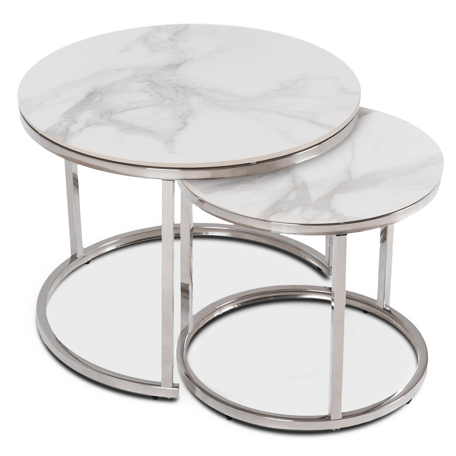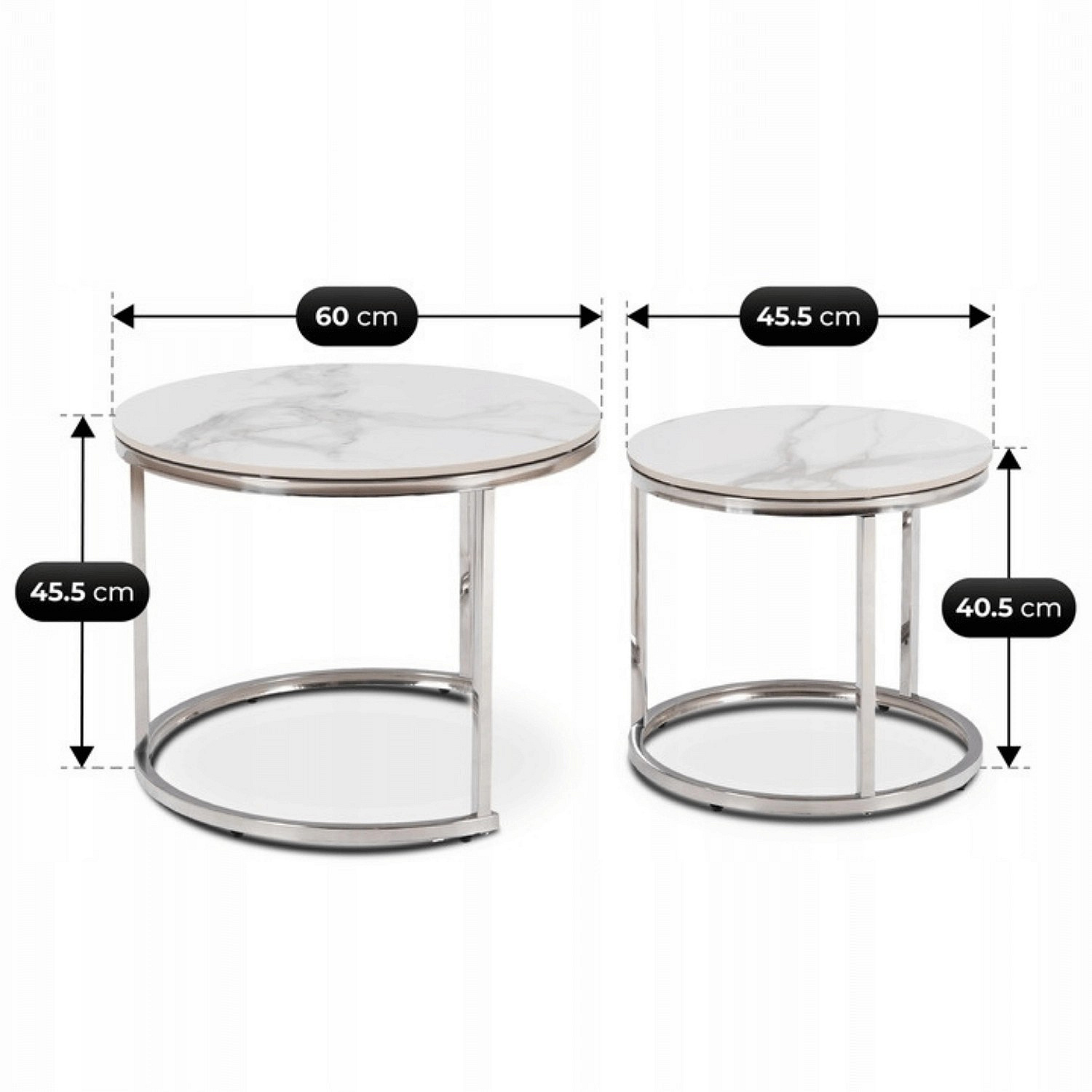 Sada Keramických Stolků AMARA Bílý Mramor/Stříbrný