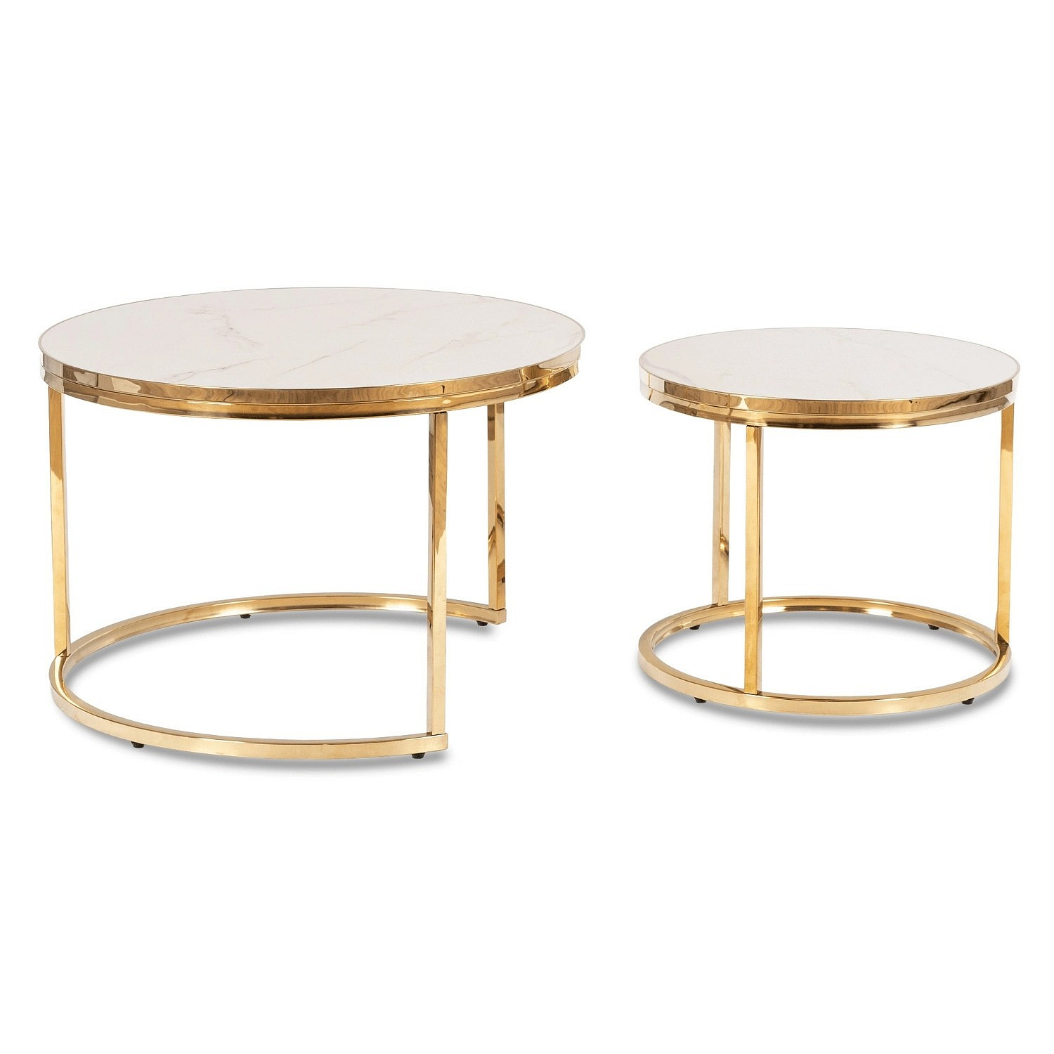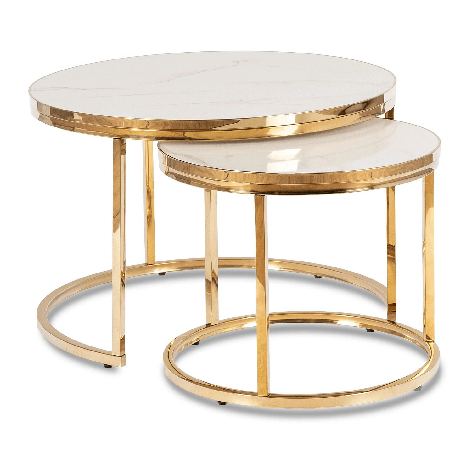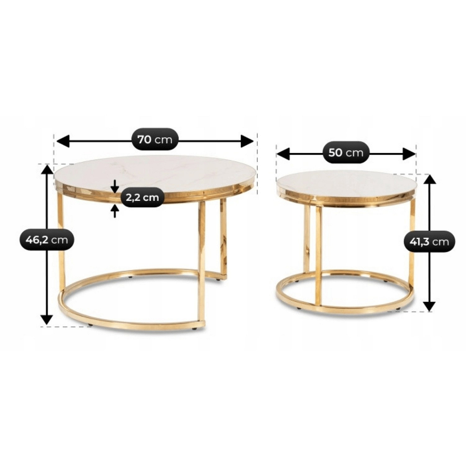 Sada konferenčních stolků ARON Bílý Mramor/Zlatý