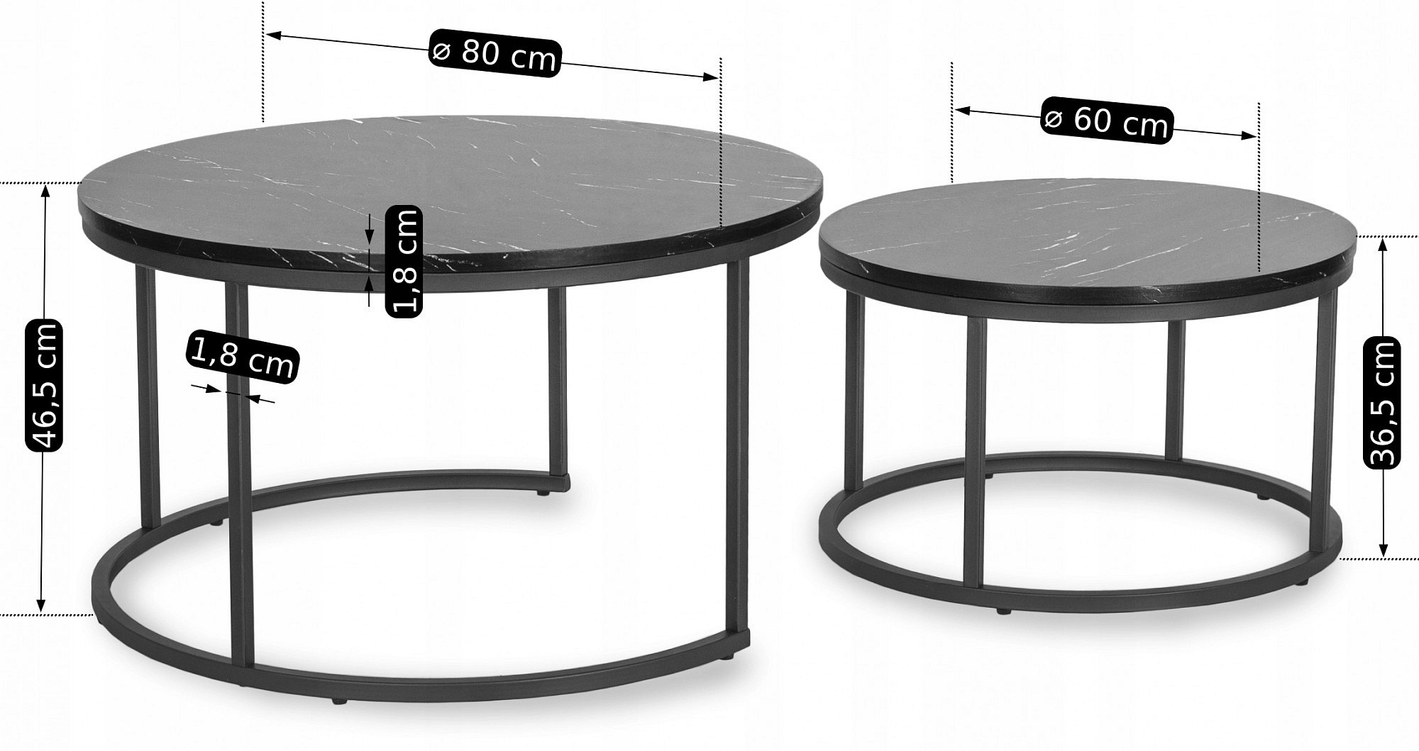 | Średnica mniejszego stolika | 60 cm |