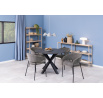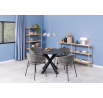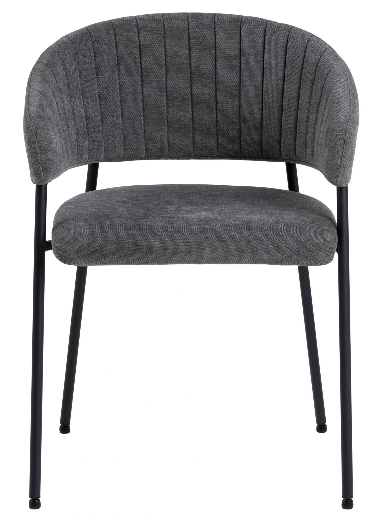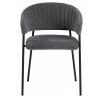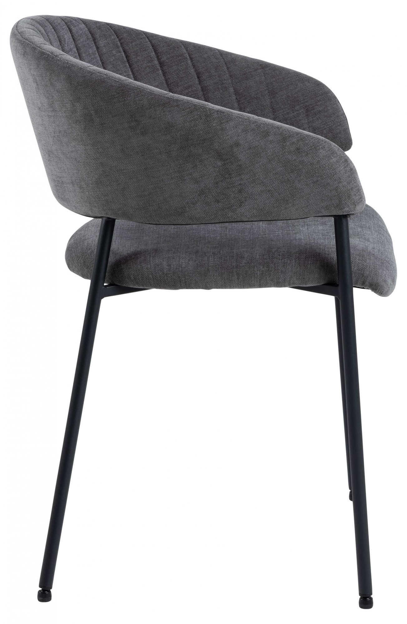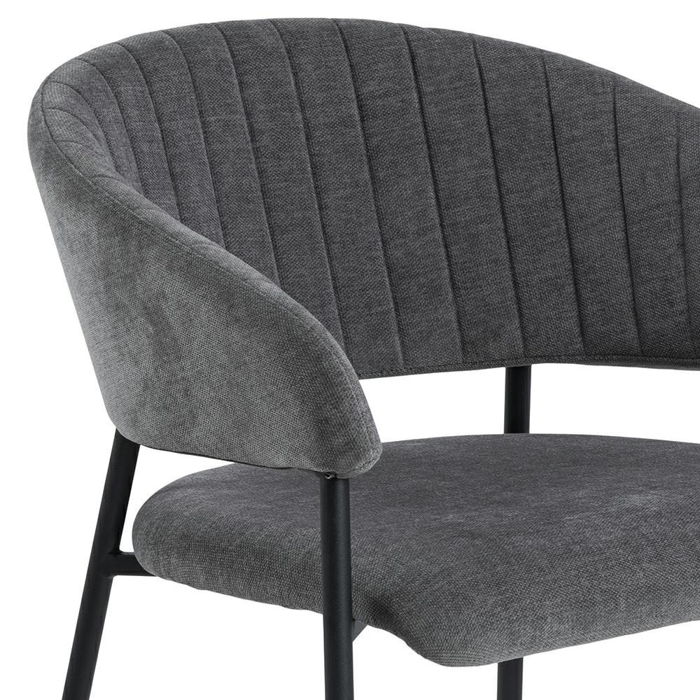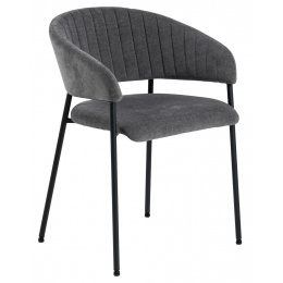 Židle Ann je elegantní model ve stylu moderního glamouru. Má základnu složenou ze čtyř štíhlých nohou vyrobených z kovu v černé barvě. Dole je každá z nich chráněna krytkou, která zabraňuje poškození podlahy. Předností židle jsou hluboký sedák a široké opěradlo spojené s područkami. Na látce na vnitřní straně opěradla se nacházejí svislé prošití, které tvoří jednoduchý, ale mimořádně elegantní dekorativní prvek. Čalouněné části židle jsou pokryty čalounickou pěnou a látkou Danny fabric dark grey 18. Židle Ann je ideální volbou do jídelny nebo elegantní konferenční místnosti. Počet kartonů: 1 Rozměry kartonů: 62x79x33cm Hmotnost kartonů: 7,2kg