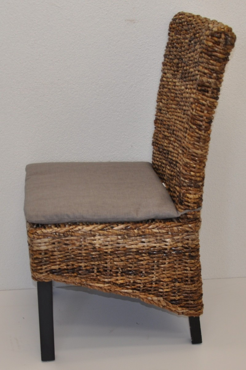 Konstrukce židle je vyrobena z mahagonového dřeva a výplet z banánového listu. | Velikost židle Banny je 49x57x105 cm. Výška sedu 47 cm. Nosnost 135 kg. Polstr je plněný 100% polyesterovým vláknem.