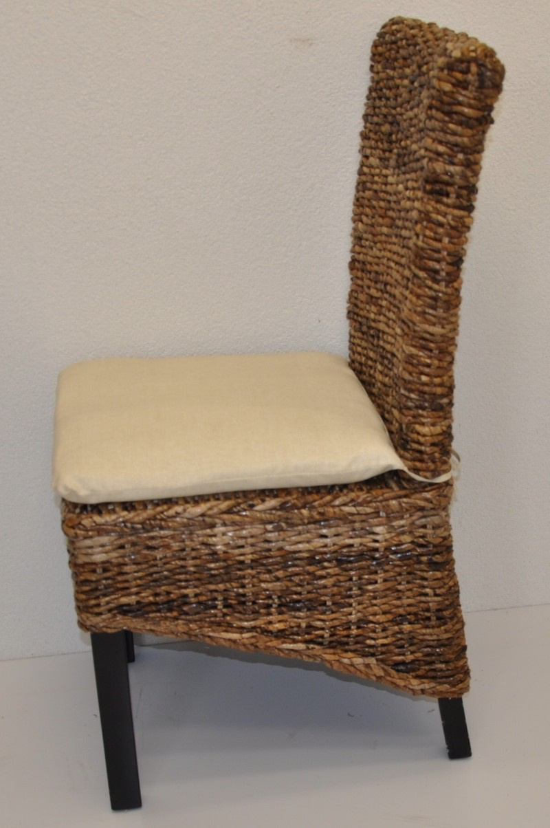 Konstrukce židle je vyrobena z mahagonového dřeva a výplet z banánového listu. | Velikost židle Banny je 49x57x105 cm. Výška sedu 47 cm. Nosnost 135 kg. Polstr je plněný 100% polyesterovým vláknem.