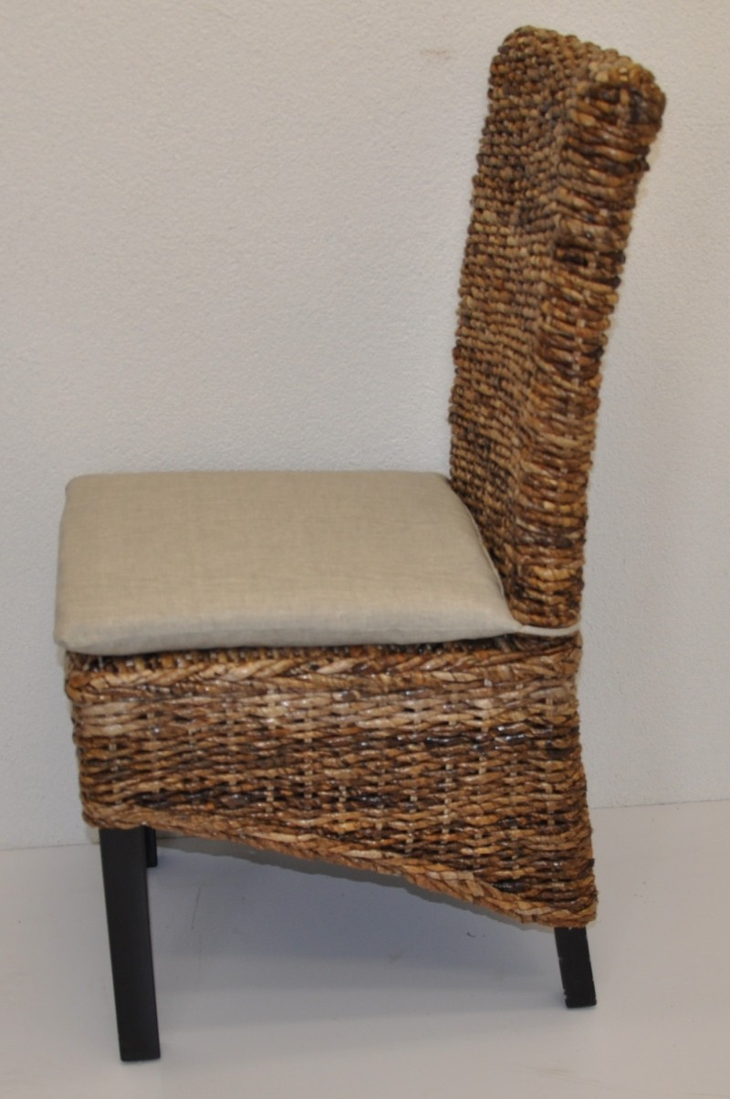 Konstrukce židle je vyrobena z mahagonového dřeva a výplet z banánového listu. | Velikost židle Banny je 49x57x105 cm. Výška sedu 47 cm. Nosnost 135 kg. Polstr je plněný 100% polyesterovým vláknem.
