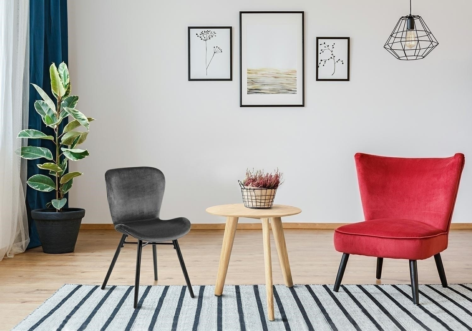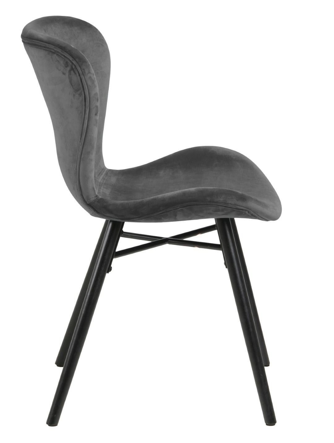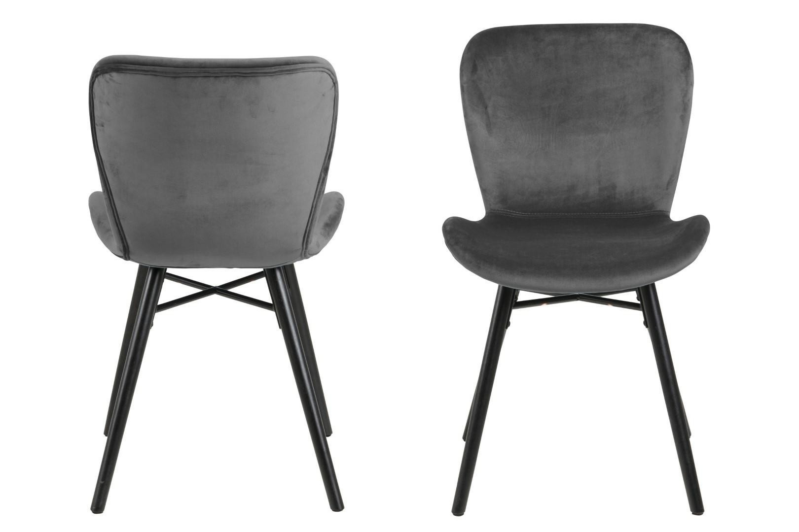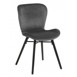 Židle Batilda je skvělým řešením pro obývací pokoj nebo jídelnu. Solidní základna vyrobená z dubového dřeva natřeného na černo, zpevněná černým kovovým křížem, zajistí stabilitu během používání. Sedák z velurové tkaniny s dodatečným silnějším obšitím vypadá velmi efektně. Tkanina použitá k čalounění sedadla je VIC dark grey 28. Hmotnost židle je 6,15 kg. Maximální zatížení židle: 120 kg Výška sedáku: 46,5 cm Šířka sedáku: 47 cm Hloubka sedáku: 40 cm