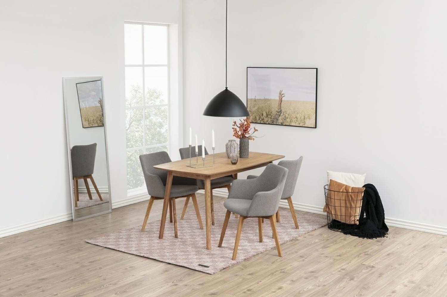 Židle Bella je kombinací antracitové barvy s dřevem, které je spojováno se skandinávským stylem. Čalouněné sedadlo v antracitové barvě má moderní tvar a jeho spojení s dřevěnou základnou dodává skandinávský charakter. Základna byla vyrobena z dubového dřeva, které bylo navíc natřeno na černo, což chrání dřevo před znečištěním a zvýrazňuje jeho krásu. Výška sedáku: 45 cm Šířka sedáku: 45 cm Hloubka sedáku: 46 cm Výška područek: 21 cm