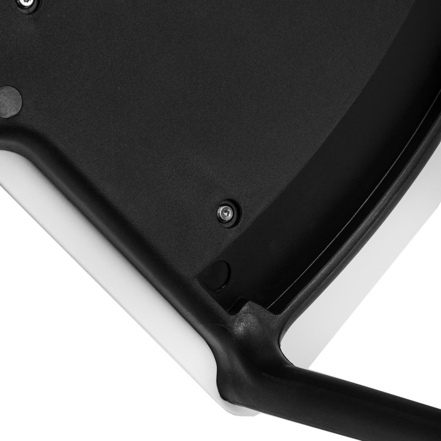 Moderní židle Bella je vyrobena z mimořádně odolného materiálu. Sedák v bílé barvě se dokonale hodí k černé základně. Polypropylen použitý v židli má matnou úpravu, je snadno čistitelný a odolný vůči znečištění, zatímco sedák vyrobený z bílého polypropylenu je dokončen v polomatu. Židle byla navržena v moderním stylu. Židle je lehká, váží pouhých 5 kg, její maximální zatížení je 120 kg. Židle je stohovatelná, nevyžaduje montáž. Výška područek: 73,5 cm Výška sedáku: 47,5 cm Hloubka sedáku: 42,5 cm