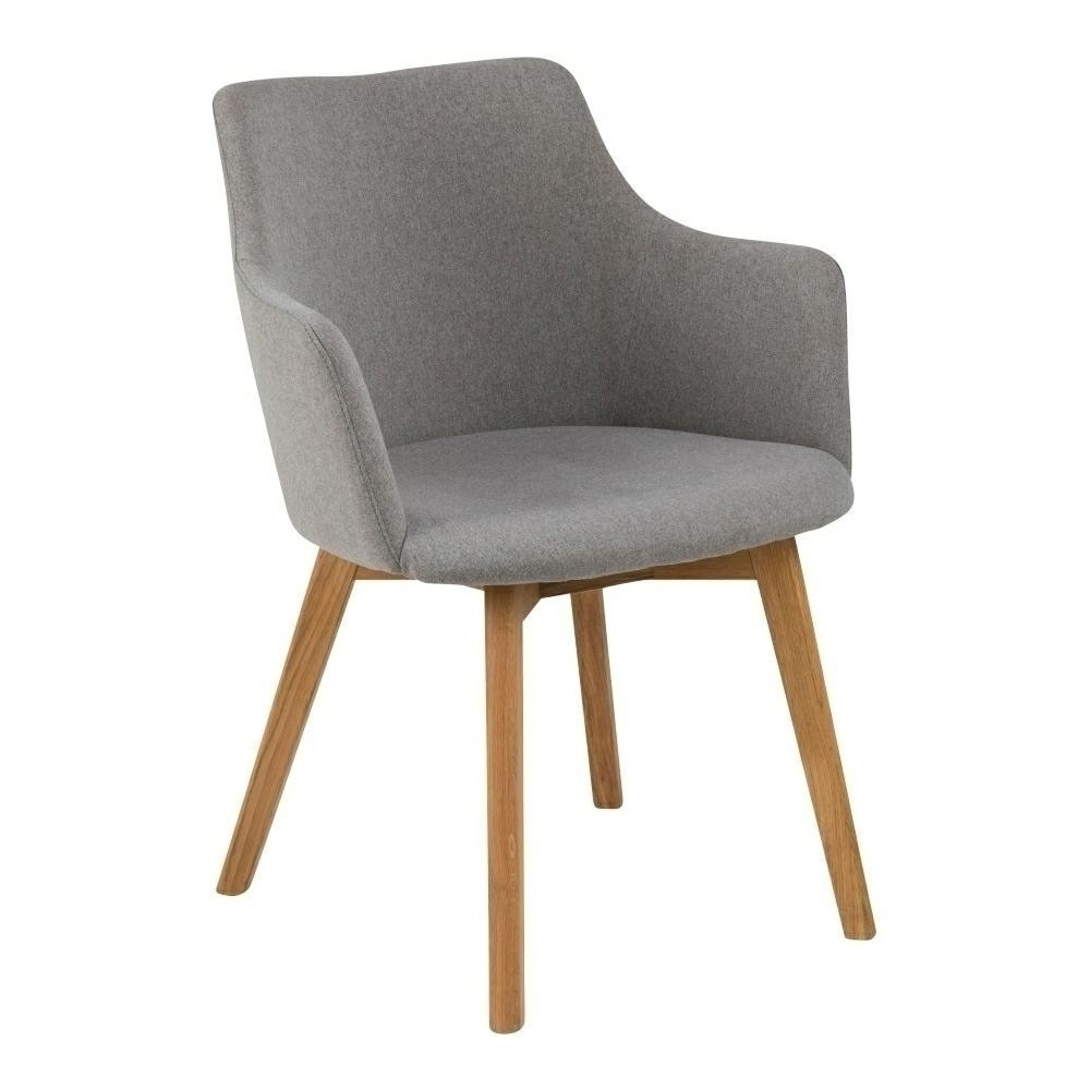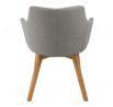 Židle Bella je kombinací šedé barvy a dřeva, která je spojována se skandinávským stylem. Čalouněné sedadlo ve světle šedé barvě má moderní tvar a jeho spojení s dřevěnou základnou dodává skandinávský charakter. Základna byla vyrobena z dubového dřeva, které bylo navíc olejováno, což chrání dřevo před znečištěním a zvýrazňuje jeho krásu. Výška sedáku: 45 cm Šířka sedáku: 45 cm Hloubka sedáku: 46 cm Výška područek: 21 cm