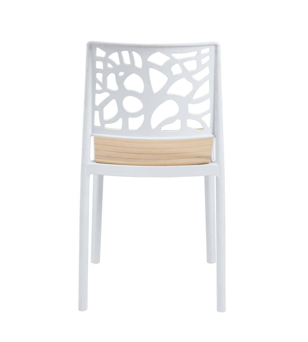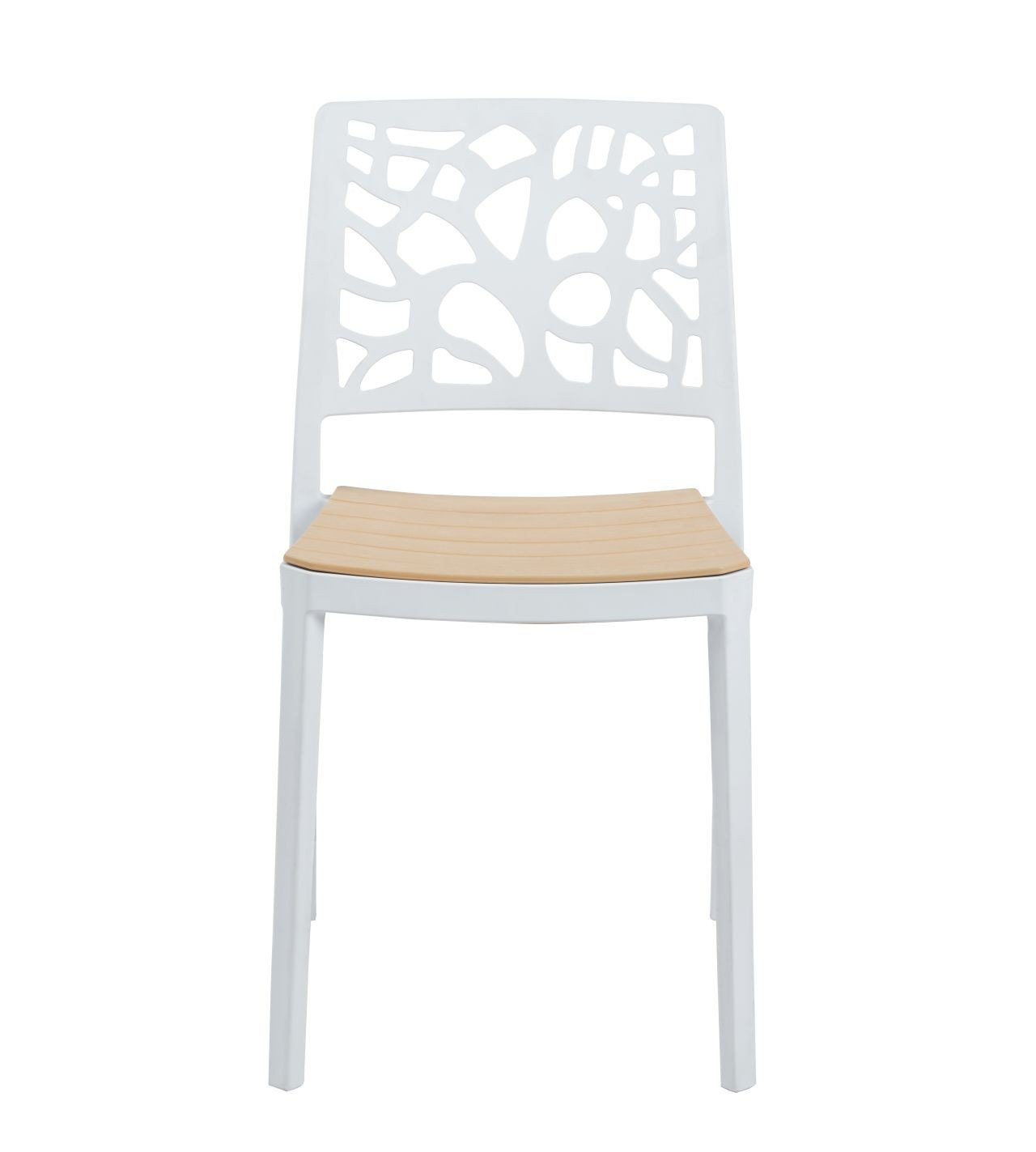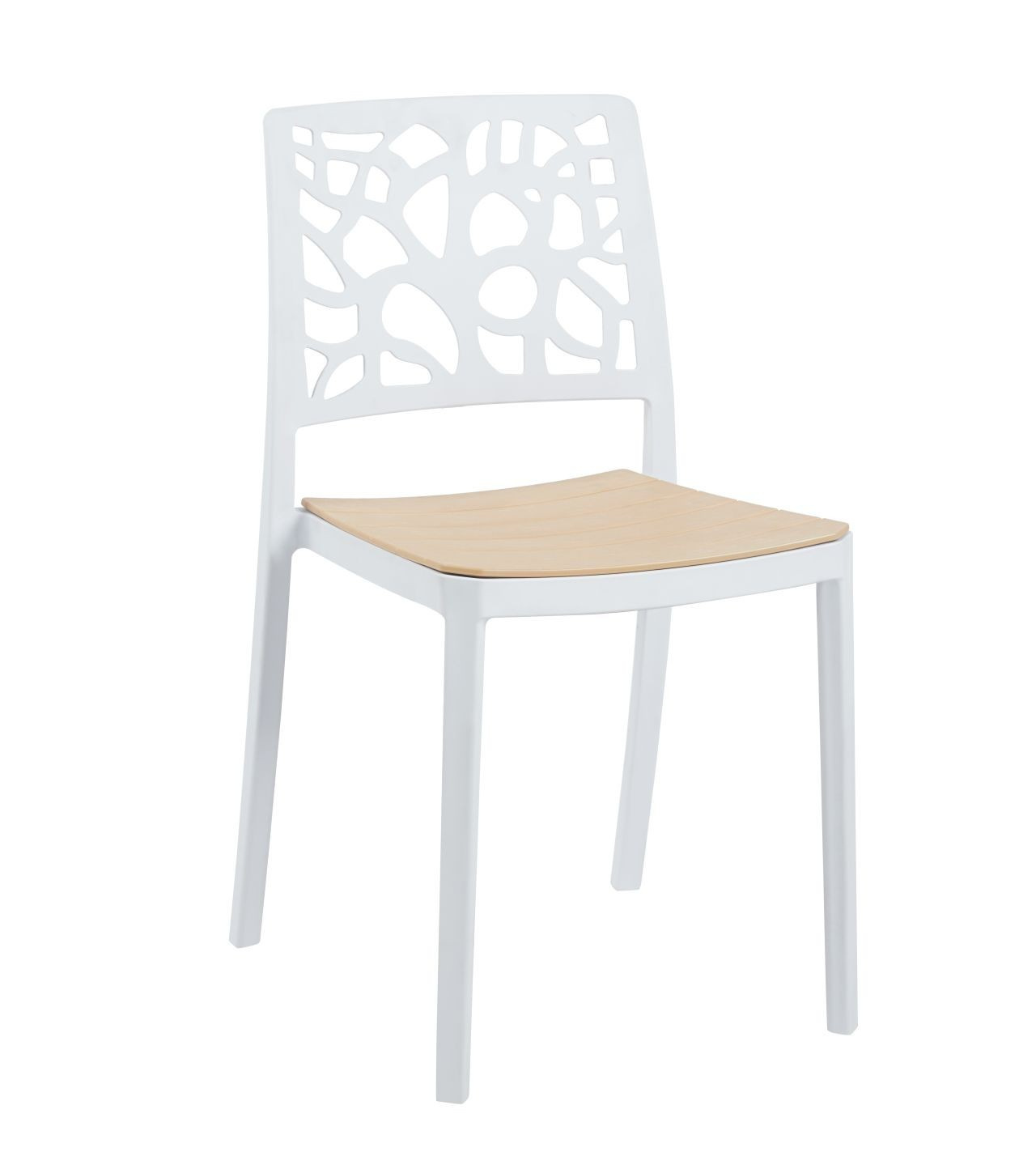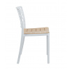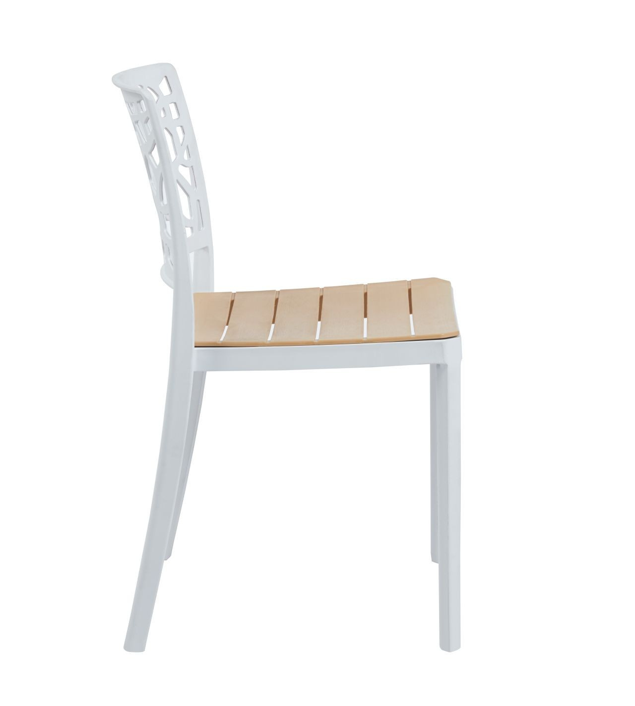 Rozměry: - výška: 80 cm - šířka: 40 cm - hloubka: 41 cm - výška sedáku: 45 cm Materiál: - PP plast Barva: - bílá s přírodním sedákem Další: - UV ochrana - možnost stohování