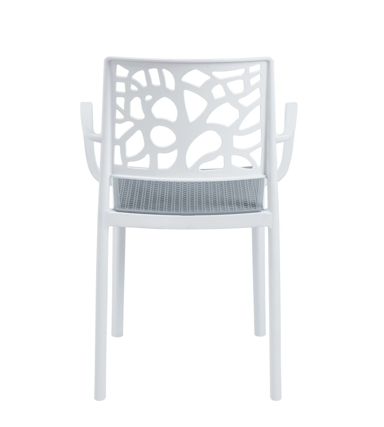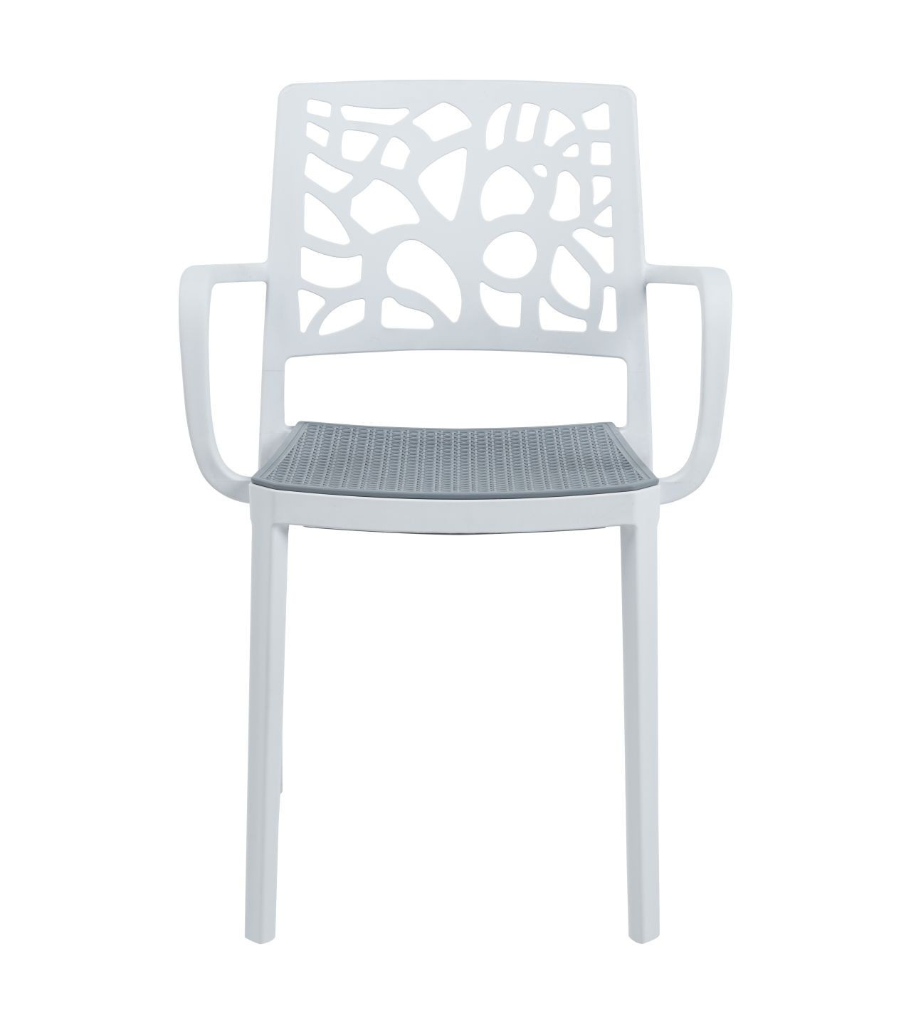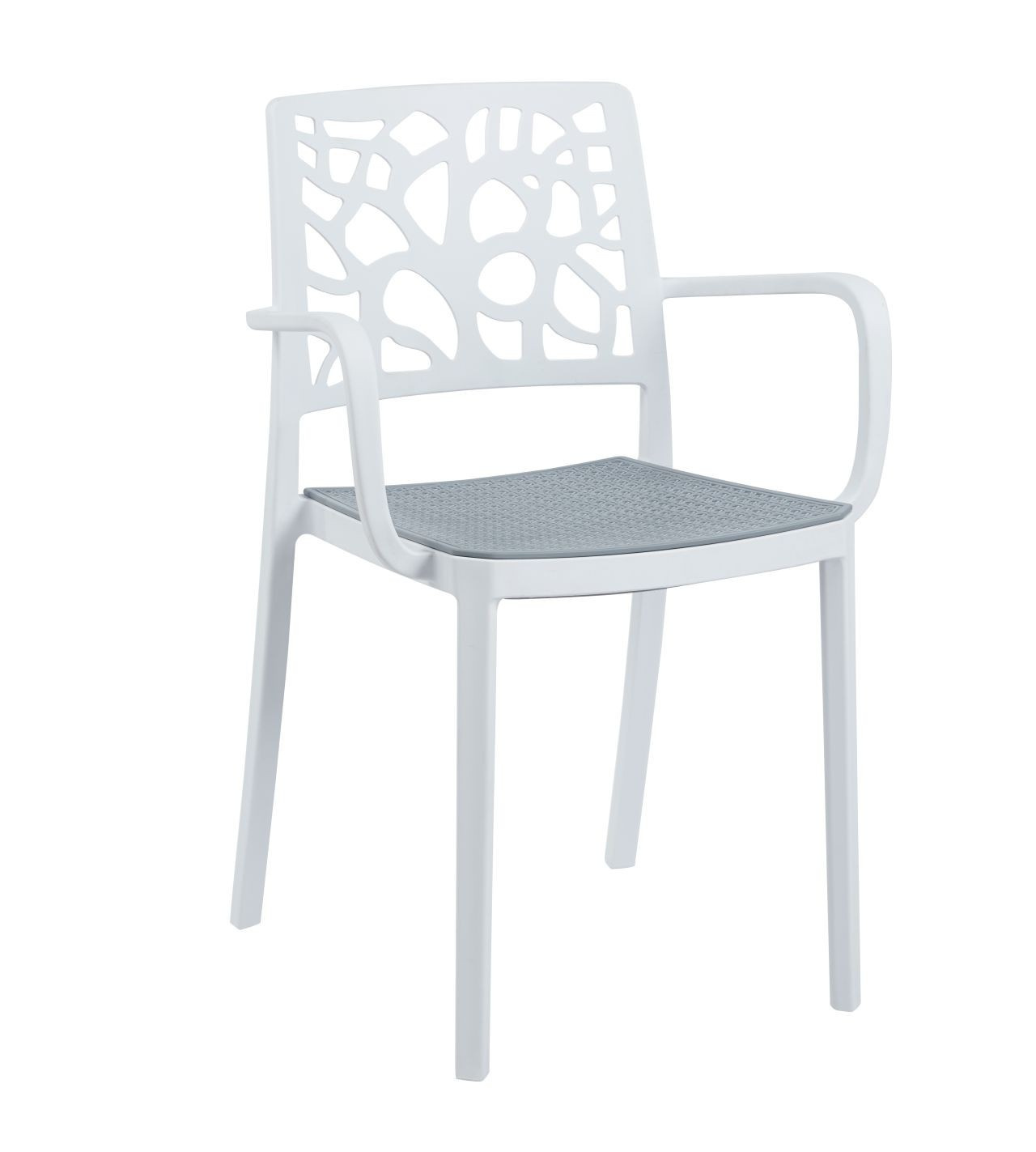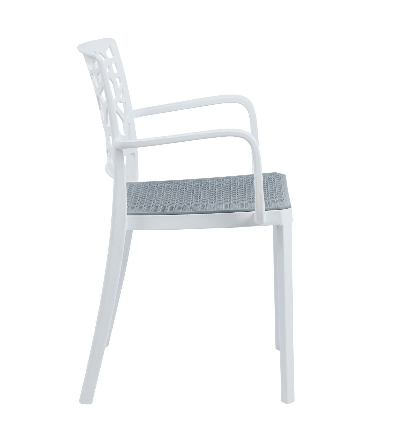 Rozměry: - výška: 80 cm - šířka: 54 cm - hloubka: 41 cm - výška sedáku: 46 cm Materiál: - PP plast Barva: - bílá se šedým sedákem Další: - UV ochrana - možnost stohování