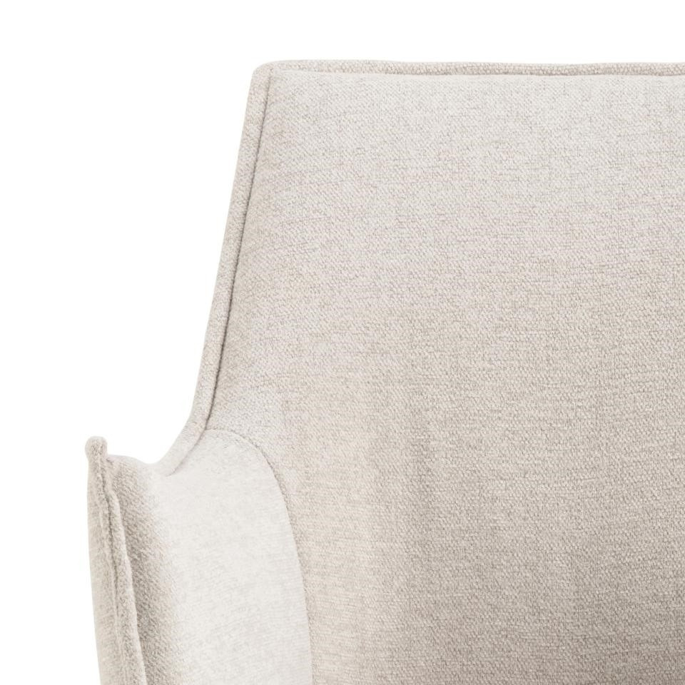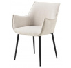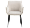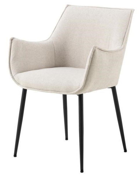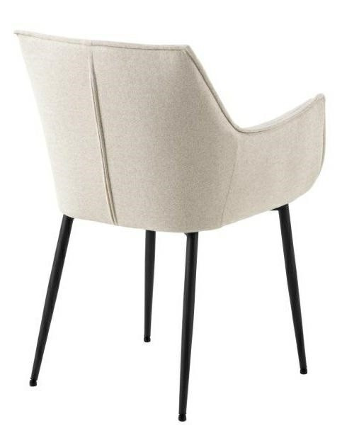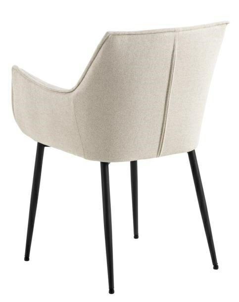 Židle do jídelny Bonita s područkami, látka Apia béžová 453, základna černá matná, matná ocel lakovaná práškovou barvou, s francouzským prošíváním a zipem. Kdybych měl popsat tuto jídelní židli několika slovy, pravděpodobně by to bylo minimalismus a pohodlí. Určené pro velké i malé příležitosti, charakteristické rysy židle zahrnují její špičaté konce, strukturální tmavě šedé čalounění a elegantní francouzské švy. Taková židle doplňuje různorodé domácí interiéry. Moderní jídelní židle s područkami se hodí jak do obývacího pokoje, tak do jídelny. Čalouněné tmavě šedou látkou s šenilovou přízí je odolné a pohodlné. Ozdobné francouzské švy s ostrými konci dodávají nábytku půvab. Vyžaduje montáž. Max. zatížení 110 kg. Hmotnost židle: 6,1 kg Výška opěradla: 28 cm Výška područek od sedáku: 21 cm Šířka sedáku: 41 cm Hloubka sedáku: 43 cm Rozměry kartonu: 58x69x51 cm. Max 2 ks v kartonu