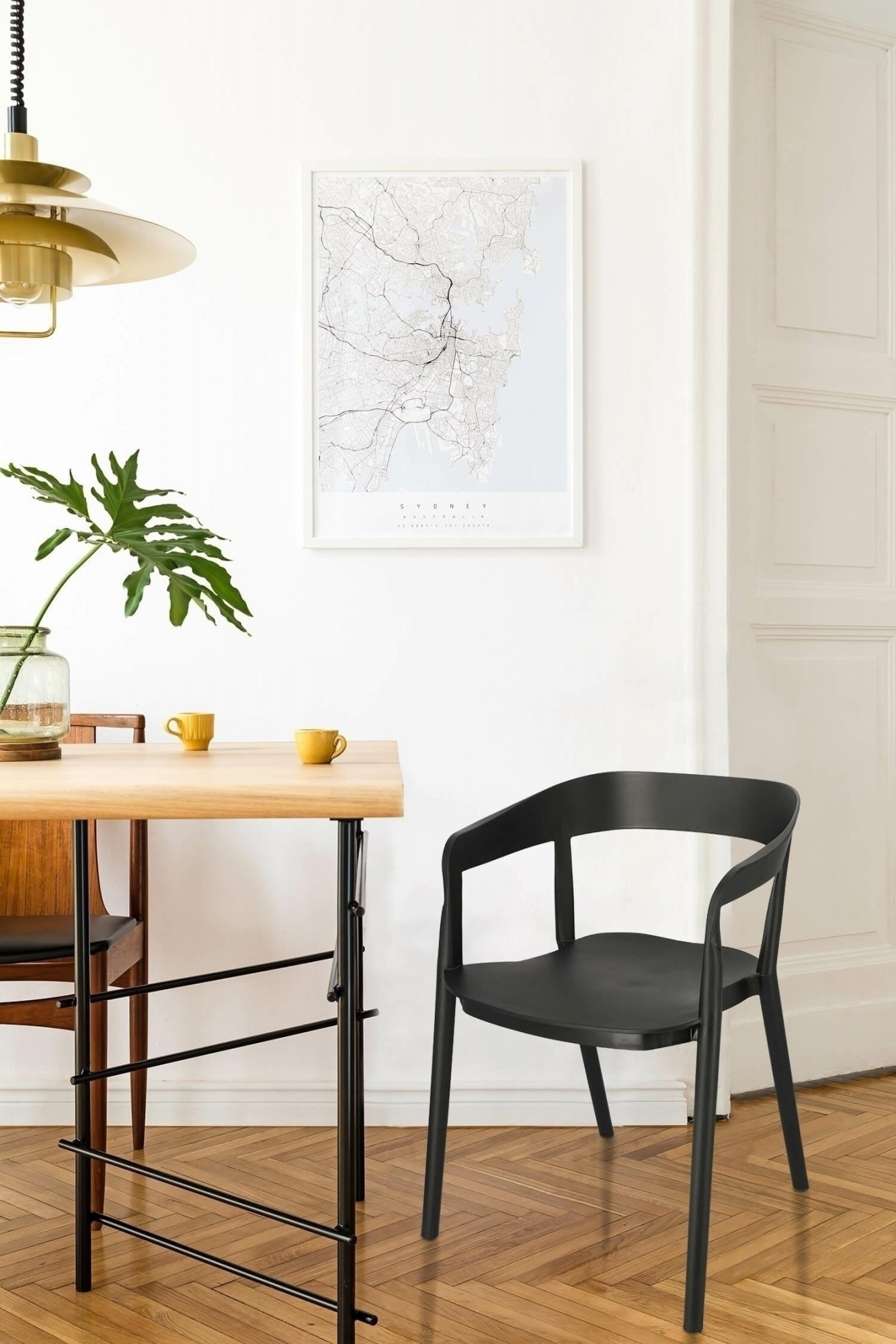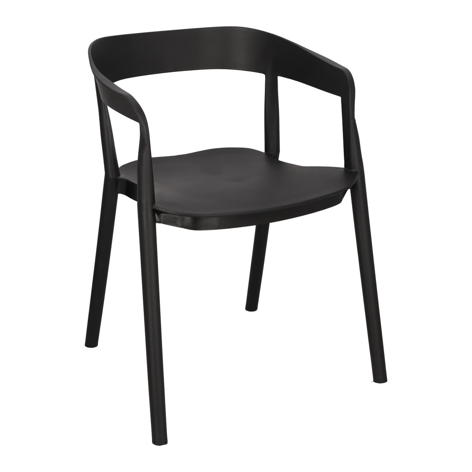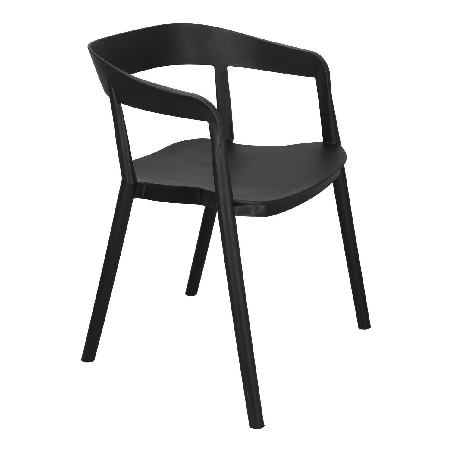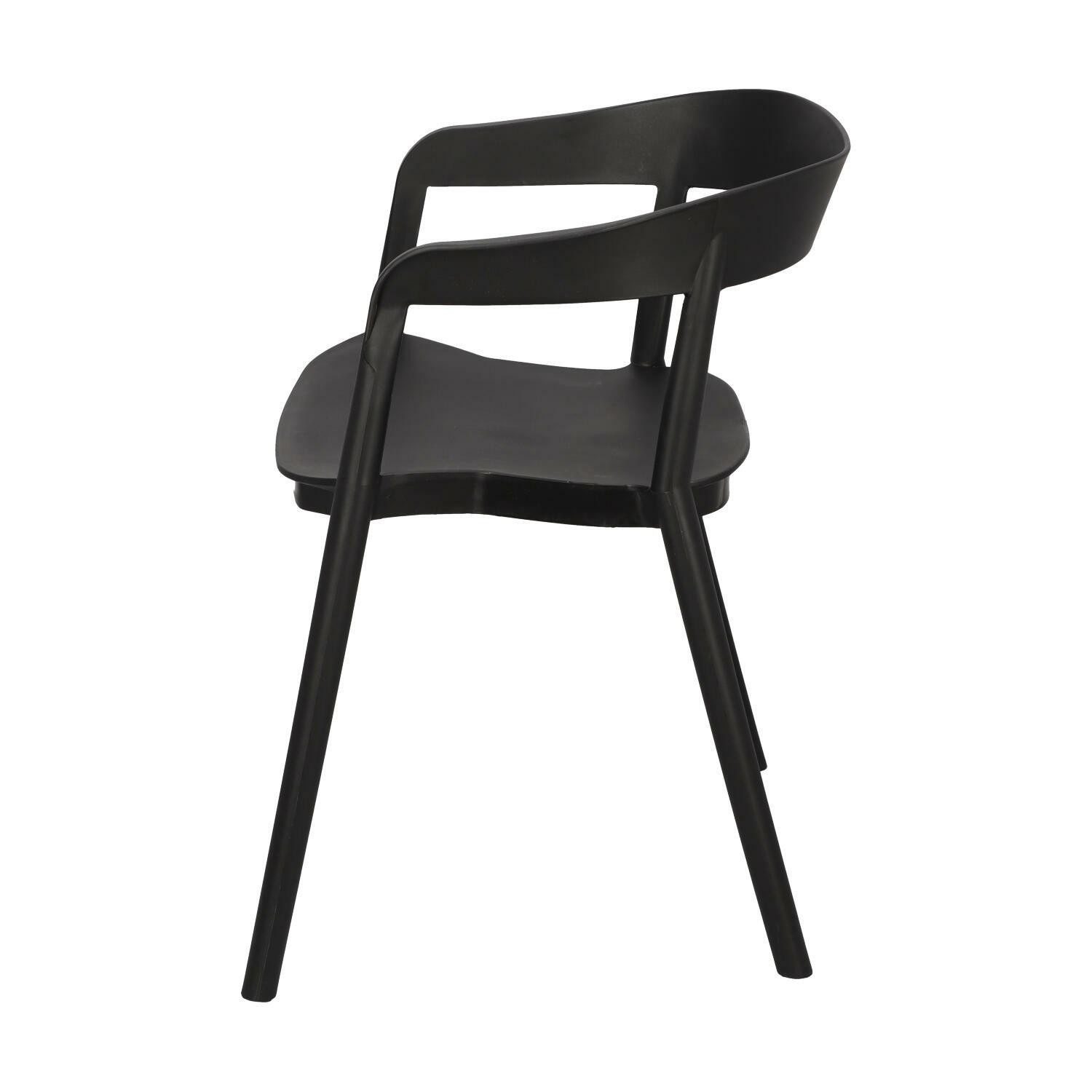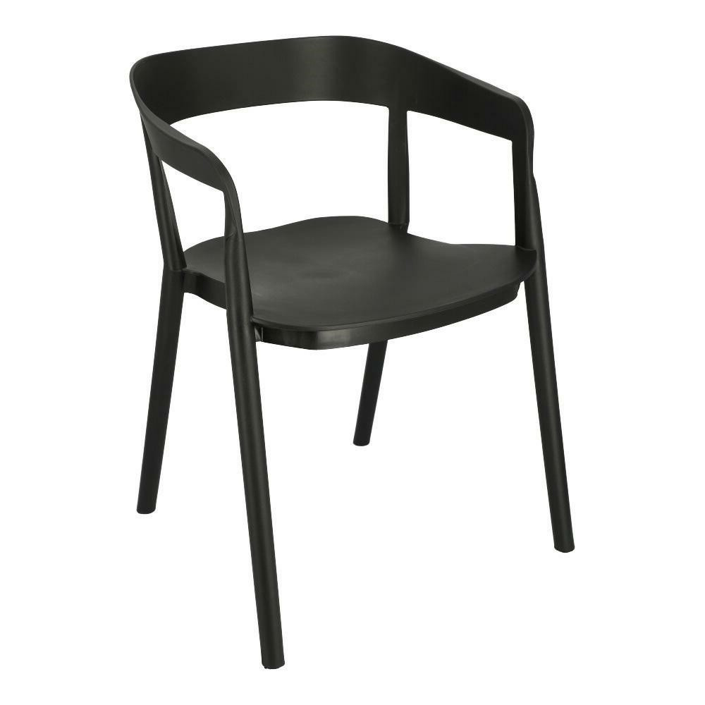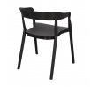 Židle Bow je moderní polypropylenová židle. Opěradlo židle jemně přechází v područky, čímž vytváří pevnou konstrukci. Celá židle byla vyrobena z plastu v černé barvě. Podpěry spojující sedák s opěradlem vypadají, jako by byly prodloužením nohou židle. Židle se dají stohovat. Max. zatížení: 120 kg. Rozměry kartonu: 67x58x90cm Max. množství ks. v kartonu:4