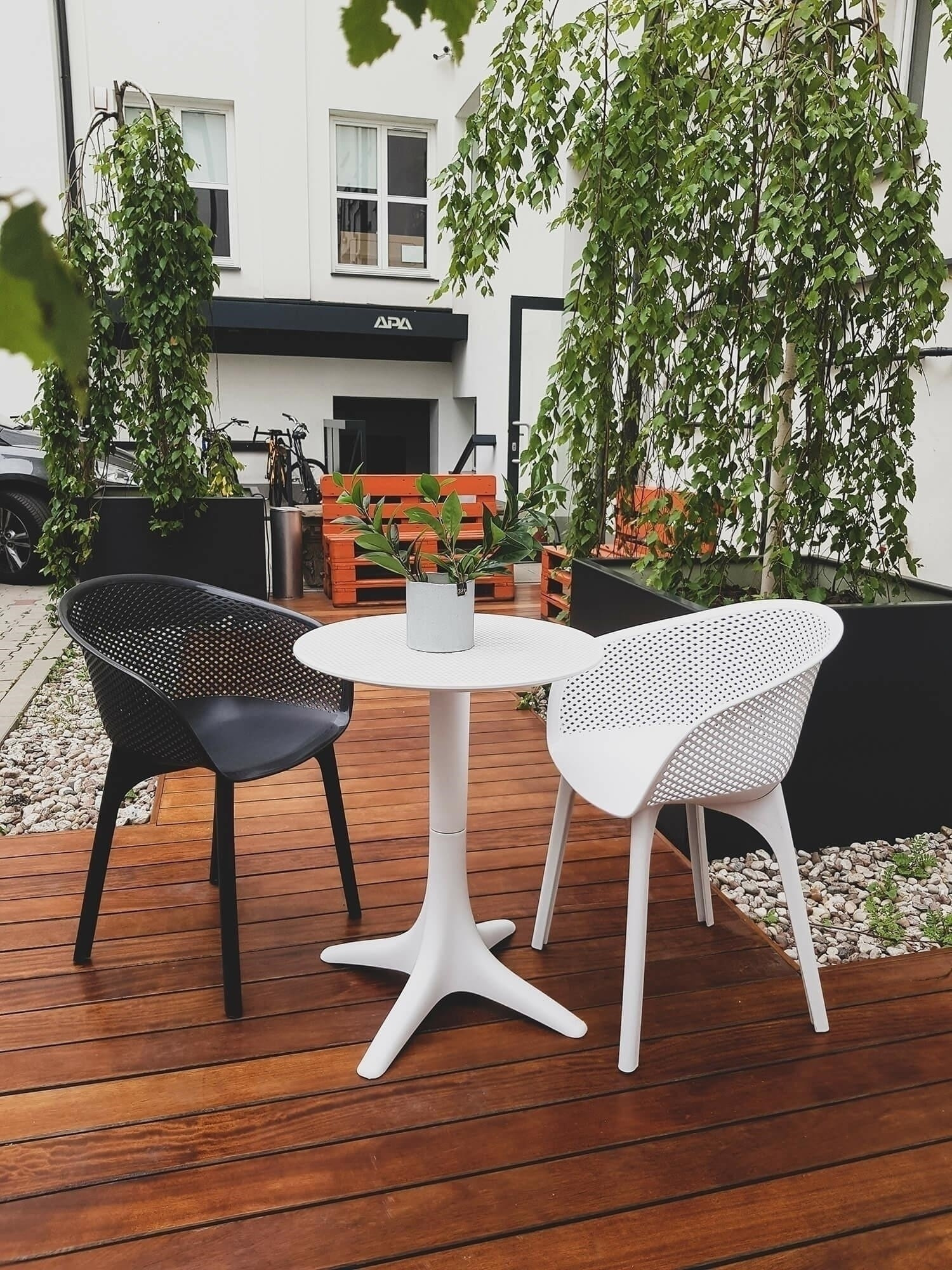 Židle Dacun s prolamovaným profilovaným sedákem je bestsellerová židle, která se těší velkému zájmu. Židle Dacum svou popularitu vděčí především způsobu jejího provedení. Dopracované v každém detailu sedadlo s područkami je nejen velmi pohodlné, ale také prodyšné. Nohy židle jsou také z materiálu, který díky své textuře imituje dřevo. Výroba židle z plastu zaručuje, že je odolná vůči vlhkosti a škůdcům, na rozdíl od dřevěných židlí. Židle Dacum se ideálně hodí ke stolu Bloom. Taková kombinace nábytku je ideální soupravou na balkon, zahradu nebo do zahrádky restaurace. Šířka sedáku: 38 cm Hloubka sedáku: 37 cm Výška područek: 74 cm Tloušťka nohou: 4 cm Rozměry balení: 64x57x42 cm, hmotnost 15 kg, Max. 4ks. v kartonu