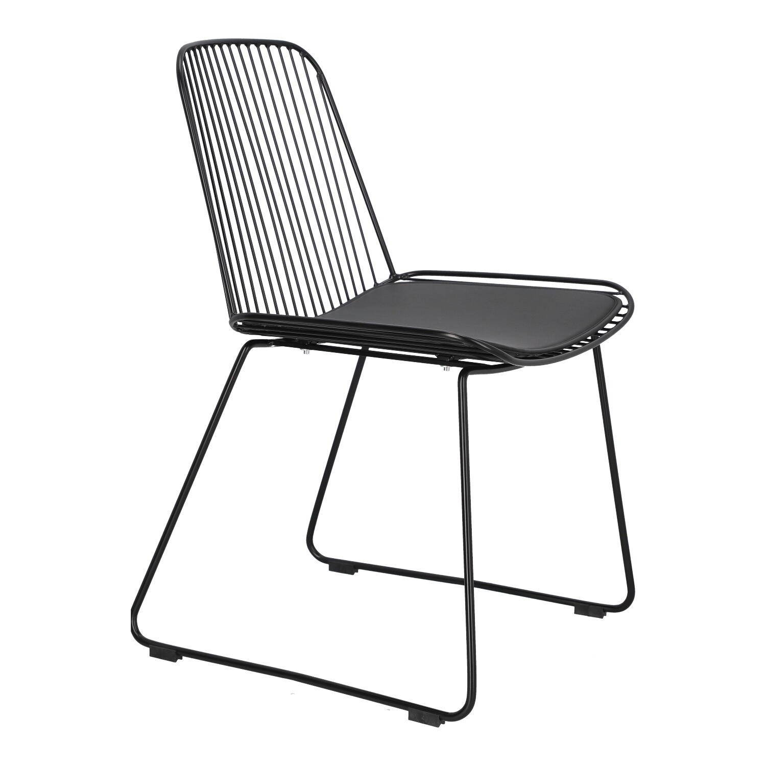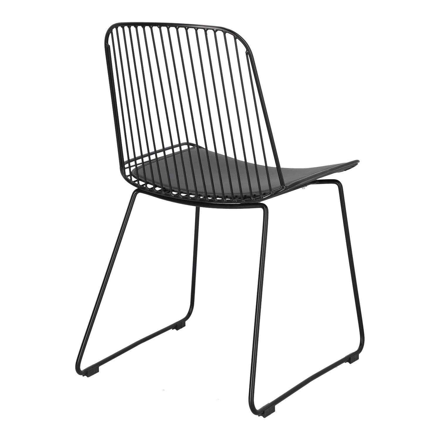 Černá loftová židle Dill s polštářem z eko kůže je odvážný projekt pro moderní interiér. Okouzlující ve své jednoduchosti, židle bude nejen pohodlným sedadlem, ale také ozdobou obývacího pokoje nebo jídelny. Židle s sedákem a opěradlem vyrobenými z mnoha tenkých prutů je netypickým nábytkem. Základna židle je tvořena ližinami opatřenými plastovým krytem, který zabraňuje poškrábání povrchu pod židlí. Židle z kovu natřeného práškovou barvou na černo byla udržována v polomatném provedení. Polštář na sedadle je snímatelný. Rozměry kartonu: 67x91x58 cm Váha: 28 kg