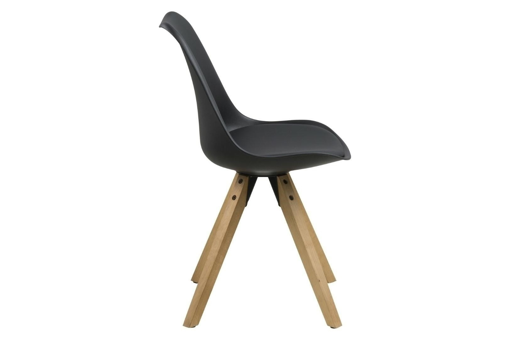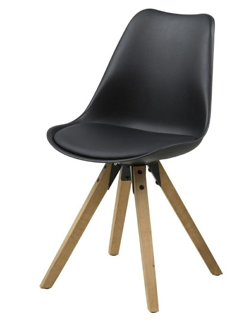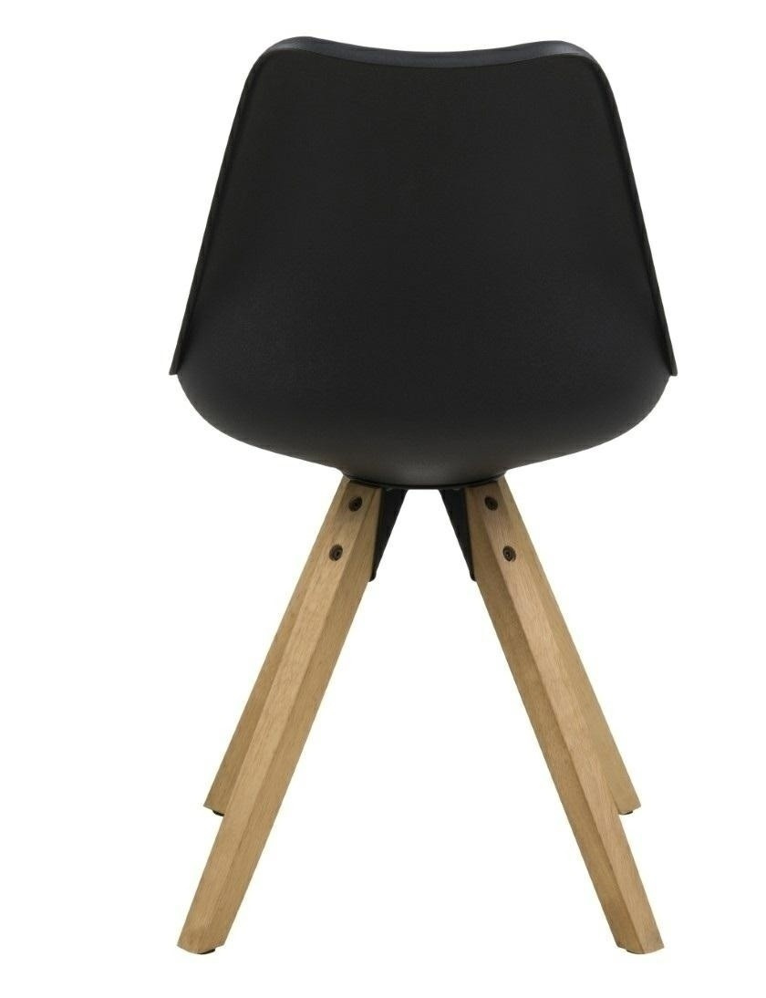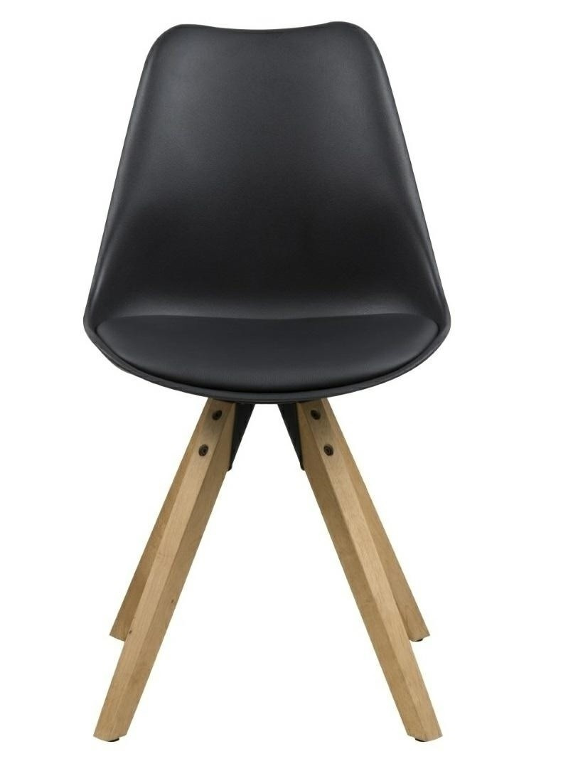 Židle Dima se vyznačuje jednoduchým, ale okouzlujícím tvarem. Sedátko bylo vyrobeno z plastu v černé barvě. Dodatečně byla umístěna polštář tapicerovaný ekologickou kůží v černé barvě. Základna byla vyrobena z olejovaného kaučukového dřeva pokrytého mořidlem v barvě dubu. Židle vyžaduje montáž. Maximální zatížení: 120 kg Hmotnost židle je 7 kg. Maximální množství ks. v kartonu: 2 Rozměry kartonu: 71 cm x 51 cm x 38 cm Výška sedadla: 46 Hloubka sedadla: 40,5 Šířka sedadla: 48