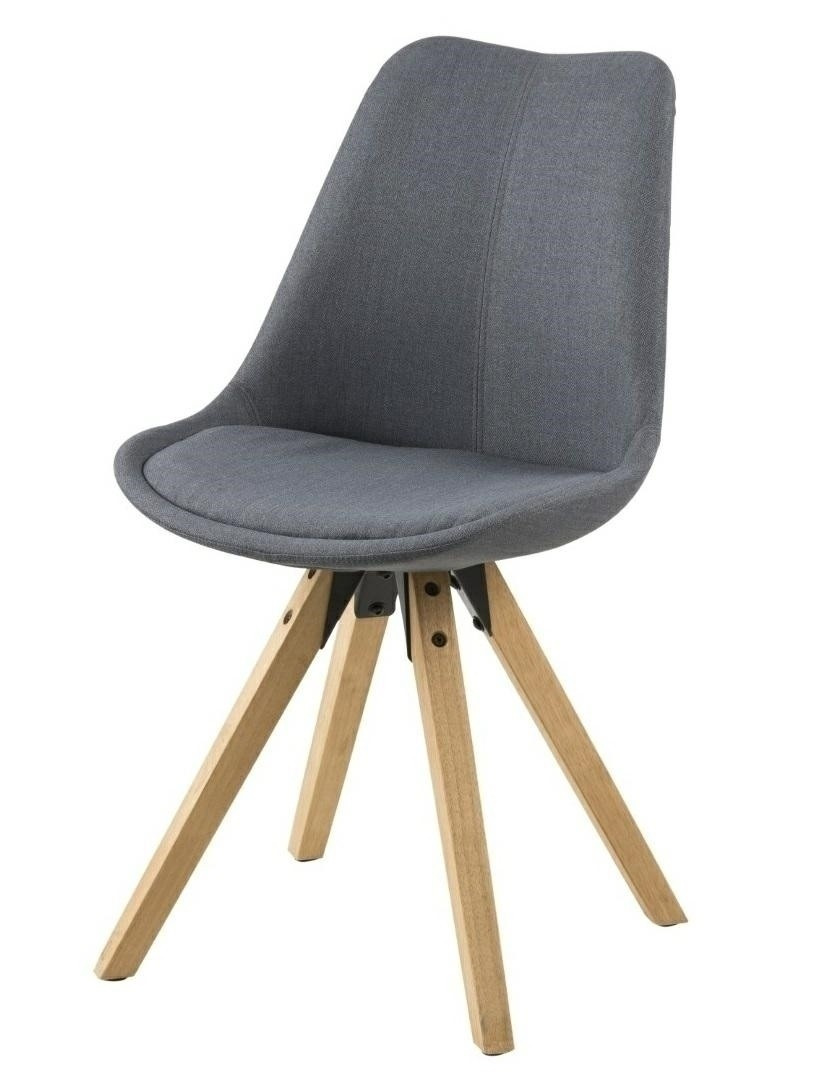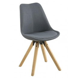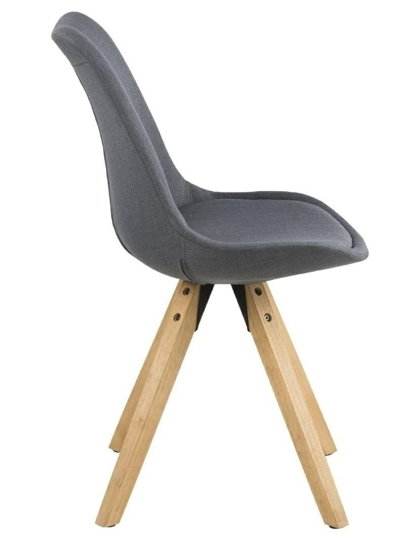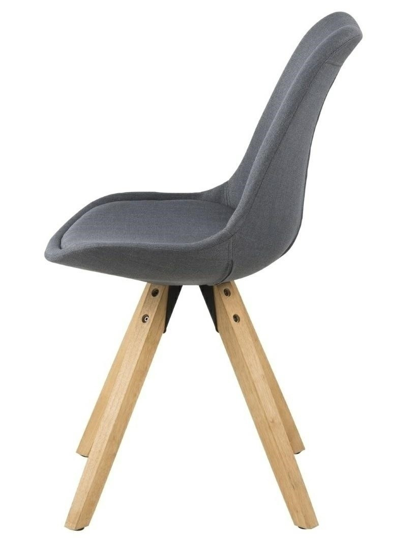 Židle Dima se vyznačuje jednoduchým, ale okouzlujícím tvarem. Sedák byl čalouněn melírovanou tmavě šedou látkou. Základna byla vyrobena z kaučukového dřeva. Výška sedáku: 49 cm Šířka sedáku: 48,5 cm Hloubka sedáku: 40 cm