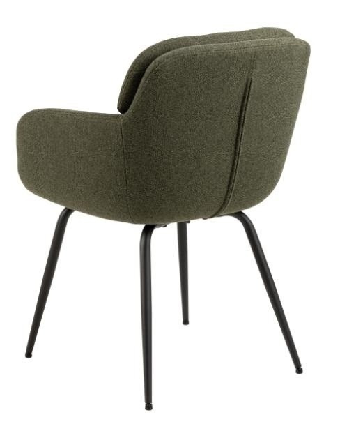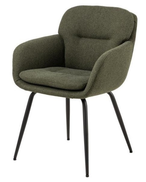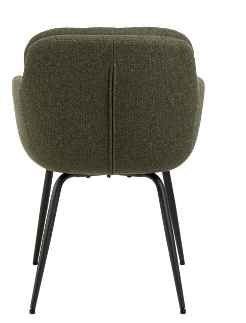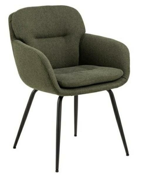Židle Dora podtrhne moderní charakter jídelny nebo obývacího pokoje. Navrženo tak, aby pohodlí bylo na prvním místě. Židle v látce Alea green 61 se osvědčí nejen v jídelně, ale bude také ideálním sedadlem v obývacím pokoji nebo židlí v kuchyni. Moderní jídelní židle s područkami. Dvojvrstvé opěradlo se zipem na vnější straně opěradla jako ozdoba. Čalouněné béžovou tkaninou vyrobenou z recyklovaných materiálů. Černé nohy vyrobené z práškově lakované oceli zajišťují styl a stabilitu. Dodáváno částečně smontované. Certifikát FSC na dřevo uvnitř sedadla. Výška opěradla: 39 cm Šířka sedáku: 43 cm Hloubka sedáku: 41 cm Výška područek: 17 cm Výška područek od podlahy: 64,5 cm Hloubka područek: 33 cm Šířka područek: 5,5 cm Hmotnost: 7,3 kg Max. zatížení 110 kg Rozměry. kartonu:58x65x43cm