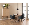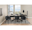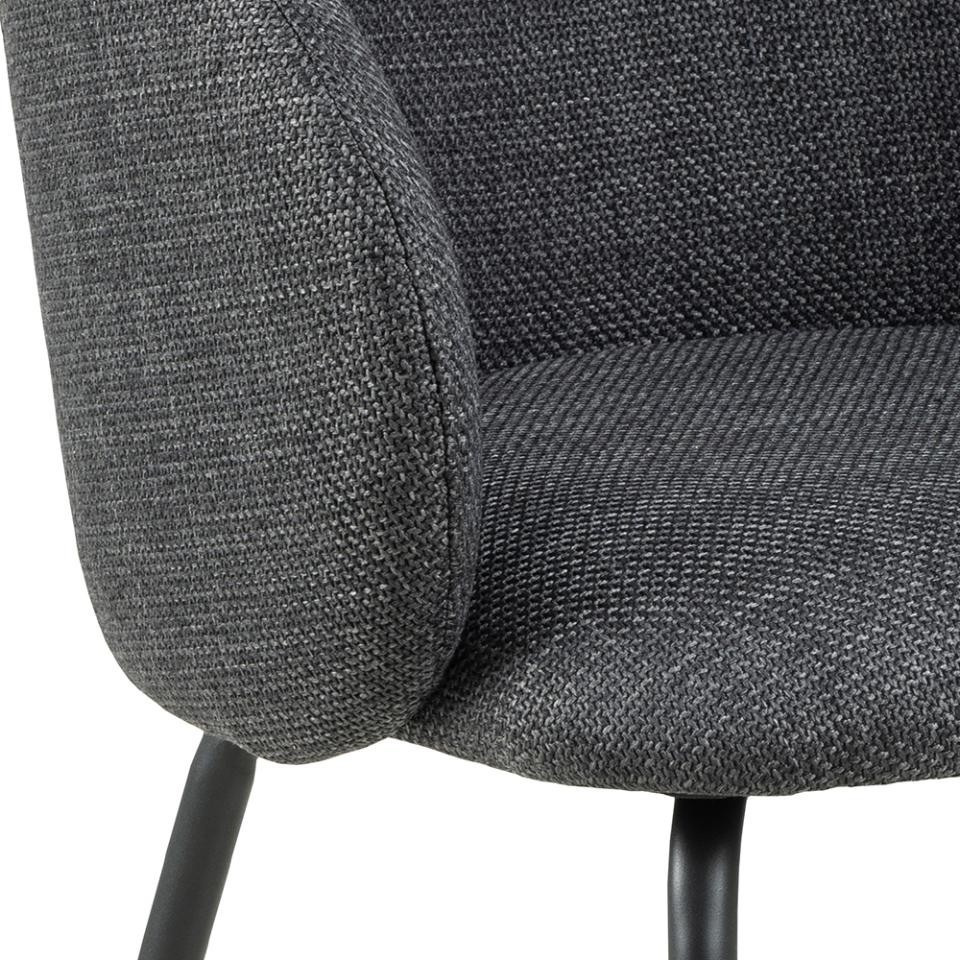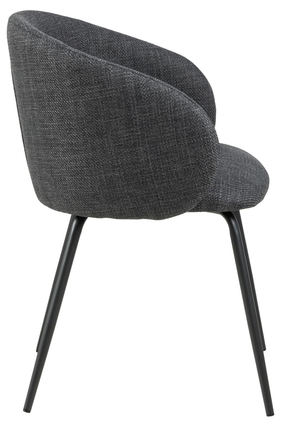 Speciální příležitosti nebo každodenní jídla, jídelní židle Eleanor může plnit obě tyto funkce. Organické křivky sedadla a štíhlé nohy z černé oceli dodávají židli ženský vzhled. Tmavě šedé čalounění pokryté strukturovanou tkaninou s efektem dvou odstínů činí židli zajímavou pro oko. Taková židle bude skvělým doplňkem do jemných interiérů, do kterých se bez obtíží začlení. Výška opěradla 38 cm Šířka sedáku: 48 cm Hloubka sedáku 46 cm Výška područek od podlahy: 62 cm Vyžaduje montáž. Max. zatížení 110 kg Rozměry kartonu: 58x59x58 cm, Hmotnost: 8.3 kg, Max. 2 ks v kartonu
